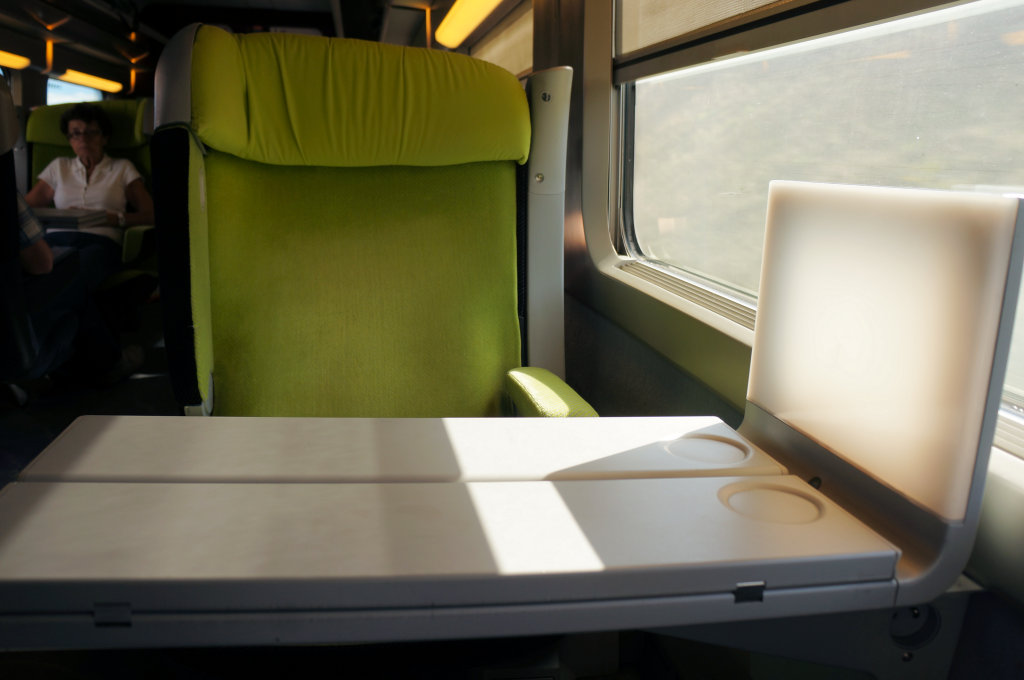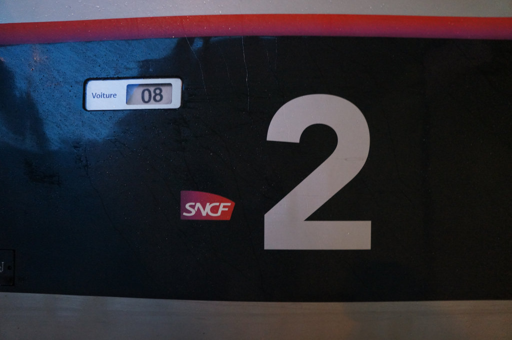 On the platform we enjoyed watching a member of the train crew enjoy the worst sneaky cigarette in the world. The member of staff departed the train before ours and stood in front of the carriage window, cigarette in one hand, a casual puff, hand behind her back and puffed again, clearly forgetting trains have windows… That’s addiction for you. Next up was our TGV and it’s sad to say that the French are copying the British here. Our train looked old from the outside and brand new on the inside.