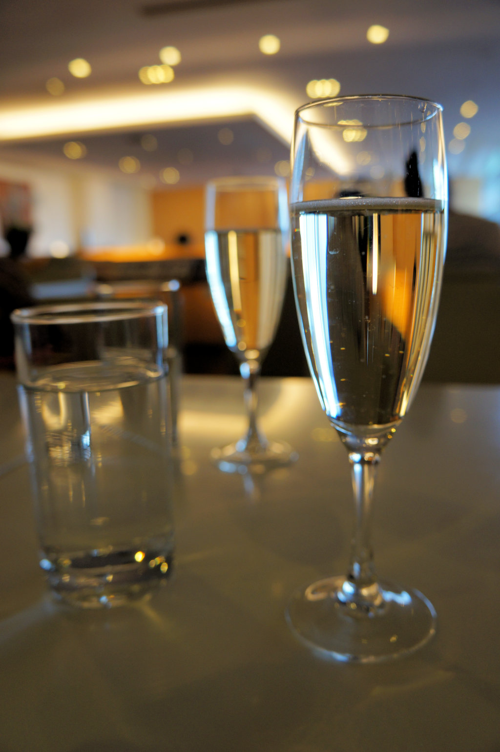 We headed up the escalators, fast track did exactly what it said. There were no mishaps with liquids, laptops or cameras and we were on our way to the Cathay Lounge, or we would have been if I hadn’t headed in the wrong direction again. We made the five minute walk to lounge heaven and were soon making ourselves at home with two flutes of fizz before starting on the food. How much did we manage? Enough to regret it later but not enough to call it a full on lounge crawl.