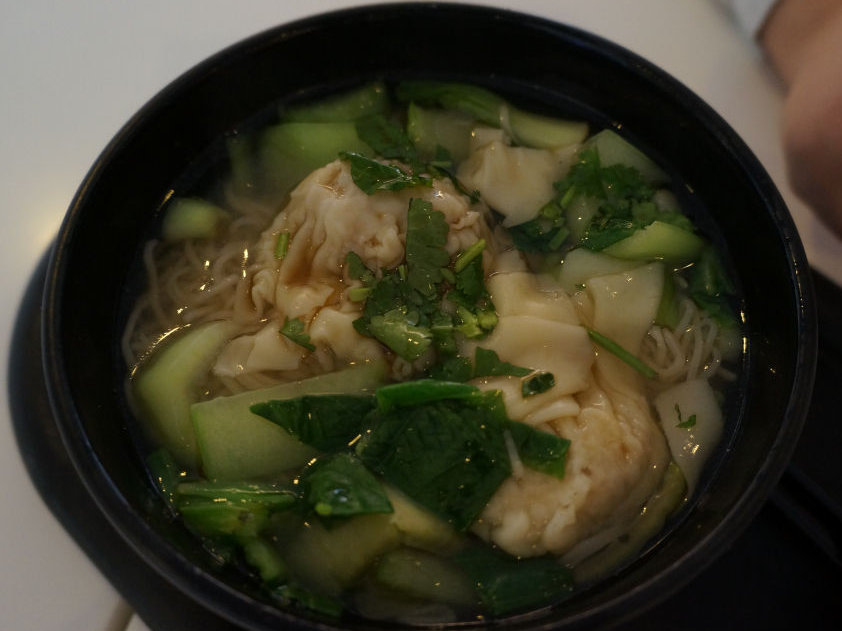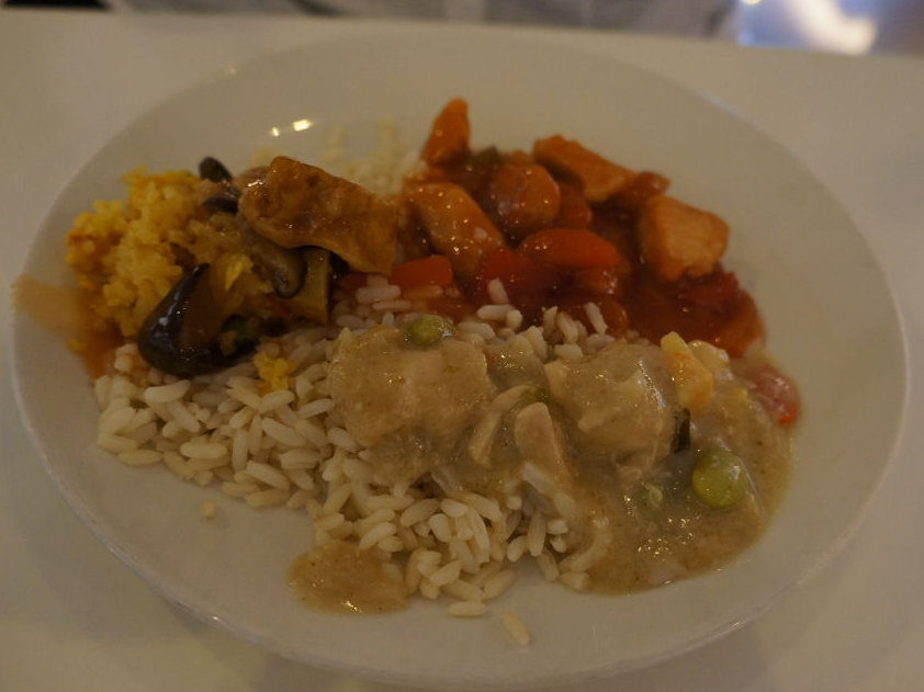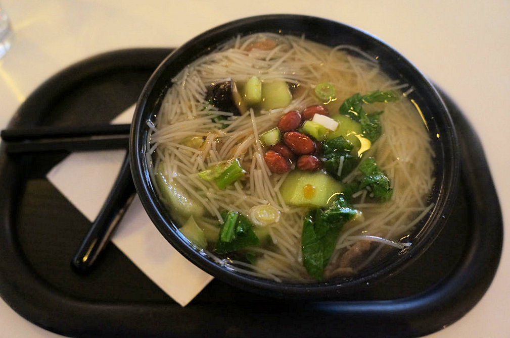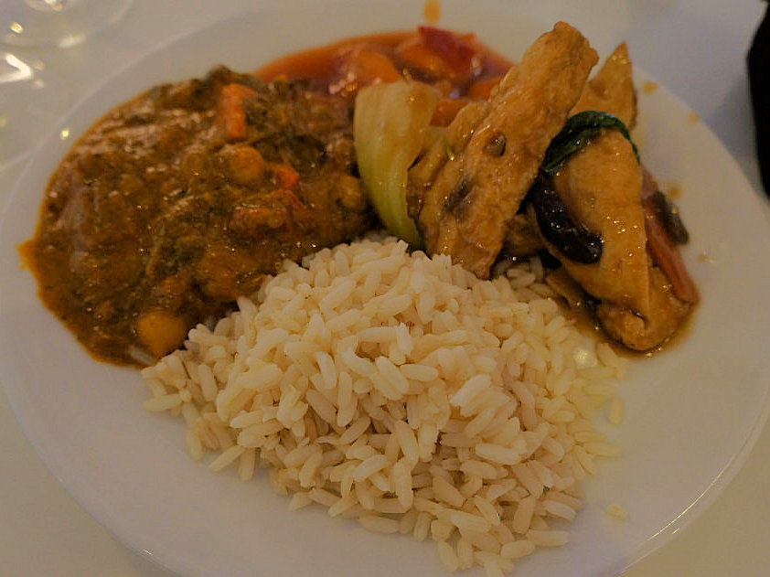I had meant to pace myself so I started with some salad to soak up the prosecco. Anne-So headed straight for the noodle bar and came back with the same proud face everyone has after placing their order for the first time. She waited patiently for the buzzer whilst I make a beeline for the Rioja and a spoon of each of the various delights from the buffet. She then slurped her way through her won-ton noodle soup and I enjoyed my selection of curries, particularly the chick peas and spinach. Feeling guilty for going to Cathay and not having noodles I ordered some beef noodles. Did I need them, no, but I wanted to try them. I poured myself a glass of Shiraz whilst waiting.