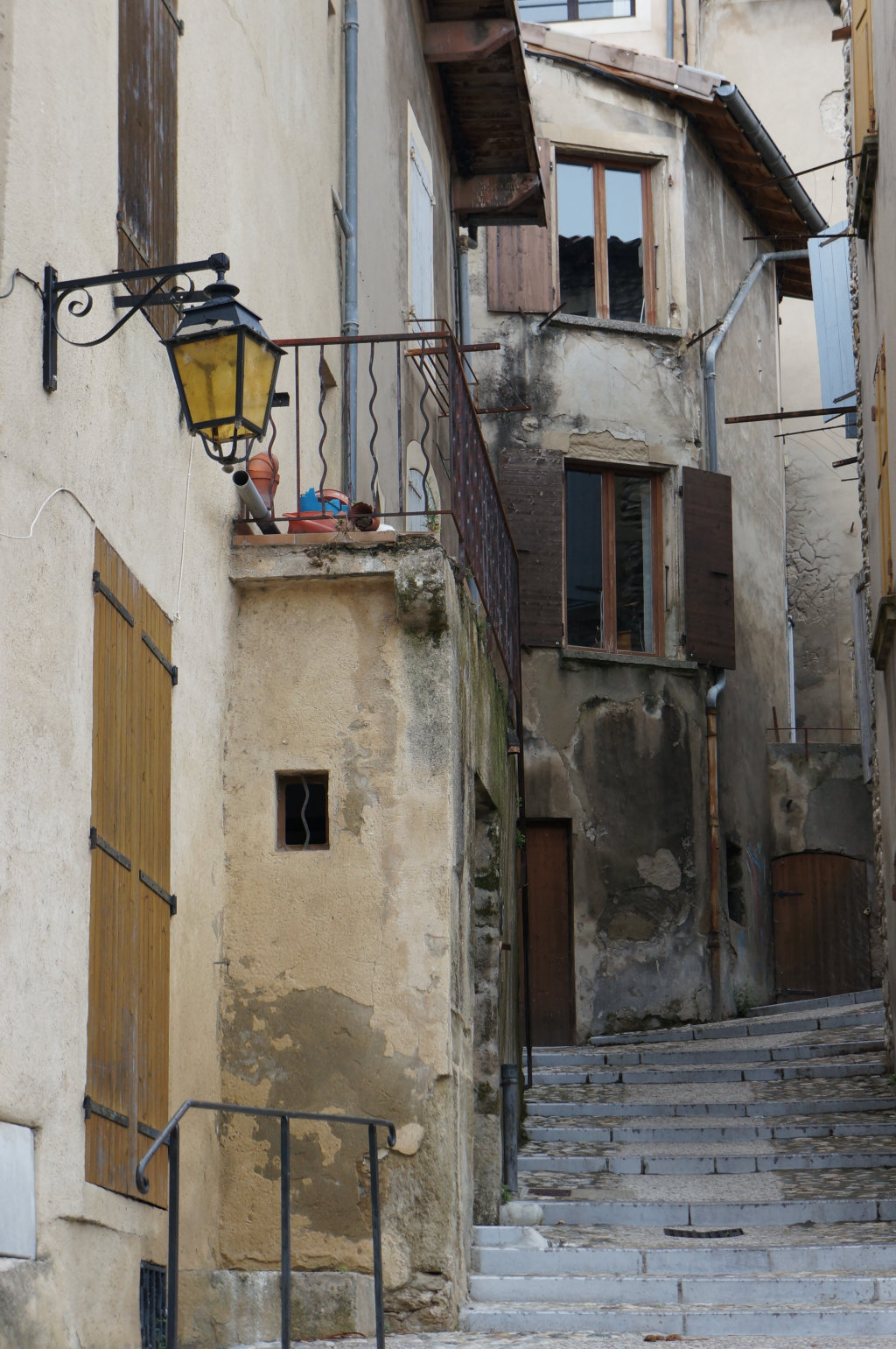 We drove back to Le Cheylard, the route was interesting and the speed hurried. My stomach was not doing well, will it be me or the dog who’d be first to cave? We run to the bus stop, it was the wrong one so we hurriedly drove down to the next one to wait, no sign or timetable, just a yellow zigzag on the road.