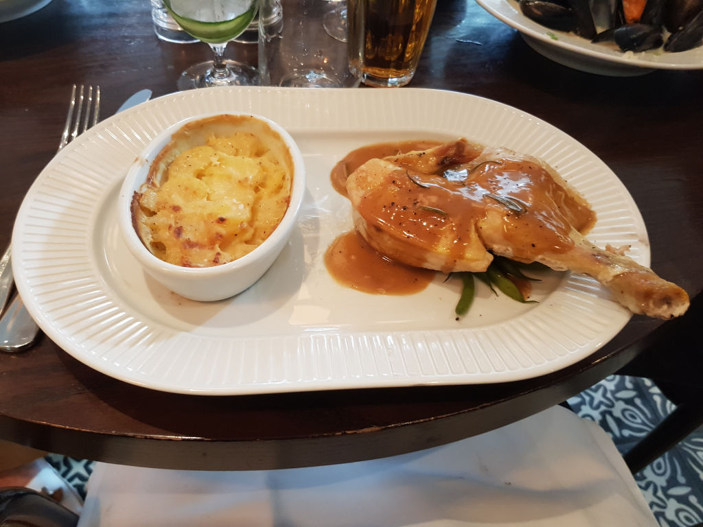 We spent a pleasant few hours catching up with my Grandma and feeling like it was only right to celebrate Bastille Day we headed out to Cote for dinner in which a series of leaks and spills would come to define the evening. The first of which was my Grandma telling a tale of a leaking bottle of elderflower wine in her fridge that had got her into a panic thinking the fridge had broken, the second was a delicious broth filled with mussels that narrowly missed Anne-So’s legs and upper body but nevertheless went flying across the table, adjacent empty chair and ended up splashing her shoe. The night before we’d watched the Dead Don’t Die and as Adam Driver said, “It’s going to end badly” and unfortunately like him we’d also read the script which basically said bad things happen to Anne-So.