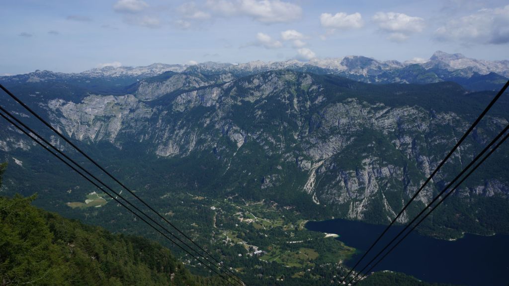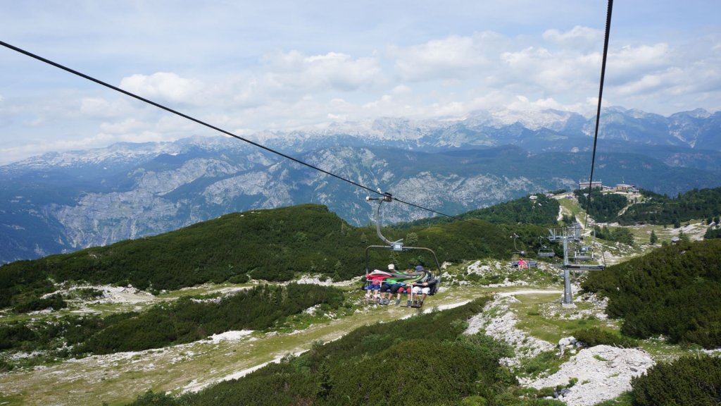 At the cross roads with the funny sign (It says ‘Slap Savica’ I couldn’t help myself) we headed slightly away from the lake and up hill. Five minutes later we’d arrived. Yes, we were taking the cable car up the mountain side to Vogel Ski Centre. However, it would’t be us without some minor drama… First of all the cable car ride wasn’t super cheap at 24€ return per person and secondly it did not help that we didn’t double check our tickets. It helped even less that the lady at the ticket office seemed to have taken a particular disliking to us and gave one of our two tickets to the group behind us (we worked this out as they stated they had an extra ticket) and then completely denied it. We all make mistakes and luckily on this occasion two wrongs and one nice tour group (yes, they do exist!) made a right and we were luckily reunited with our missing ticket as the cable car was about to depart.