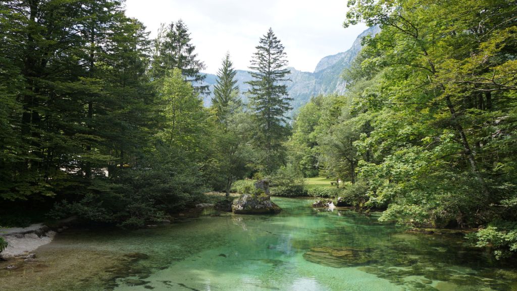 After breakfast we made the short walk to Bled Bus Station to get our connection to Bohinj. It was a bargain at €10 each one way. There was a good system set up where a multilingual person sold all us tourists tickets before we got on the bus, saving the not so multilingual bus drivers a lot of work. Our bus was a little late, very busy and thankfully well air conditioned. The views from the tinted windows were pretty decent as well; mountains, railway lines (train geek alert) and little villages. We got off a little later than the crowds (well, the majority of the bus is a better description, but crowds sounds more impressive) who headed straight for the lake as a few stops down the road we had a cunning plan to enact!