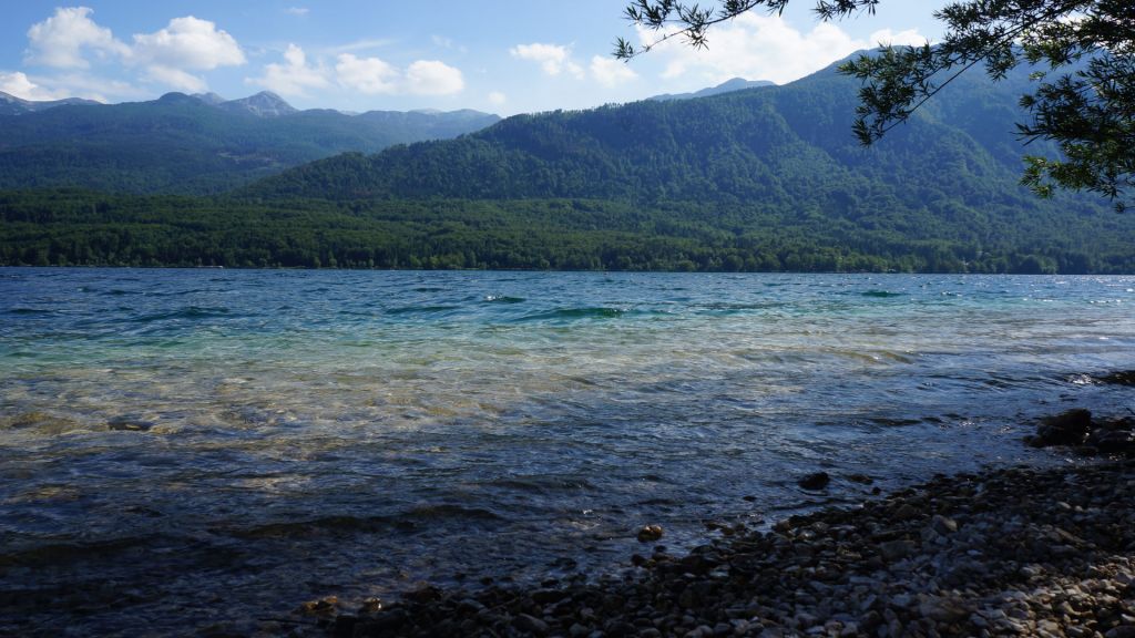 Once I’d relieved myself in anger for the last time that day – further movements during the day were not of the involuntary kind, we were able to walk the lake. And what a stunningly beautiful place Lake Bohinj was! If Bled is where the cool kids hang out for a stroll or a drink or five, Bohinj is where people come to camp and soak up the sun. We followed the Fairy Trail past the battalion of tents, stamping our hands at the various Fairy Trail checkpoints like the overgrown kids we are. There are a few caveats in that a parts of the walking path around the lake are not in great shape. I would imagine it would be significantly worse if you were going by bike, with bits of the lakeside bumpy in places with rocks, tree roots, a dry river bed, skinny dippers young and old and the searing hot sun.