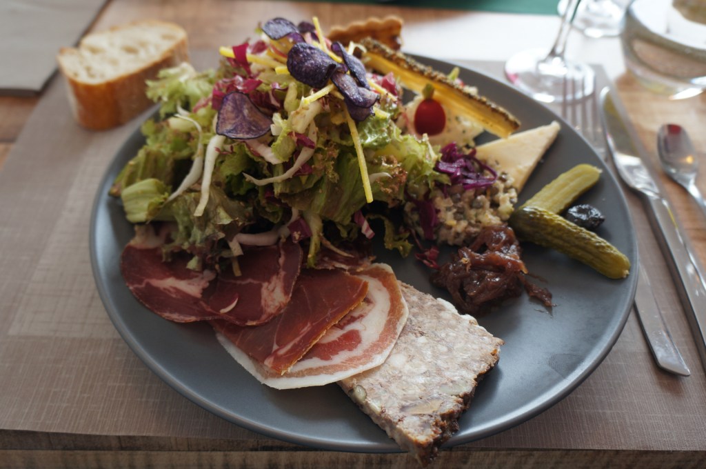 First up we were thought we were getting a simple charcuterie plate, what we got was a nicely chopped salad, cheese, cornichons, potato salad, a slice of quiche, as well as the charcuterie. What the picture won’t tell you is how the sour tartness of the potato salad and giant couscous was balanced by the simple undressed salad leaves and the salty charcuterie. In fact they acted like a dressing. The flaky leek quiche was also very tasty.