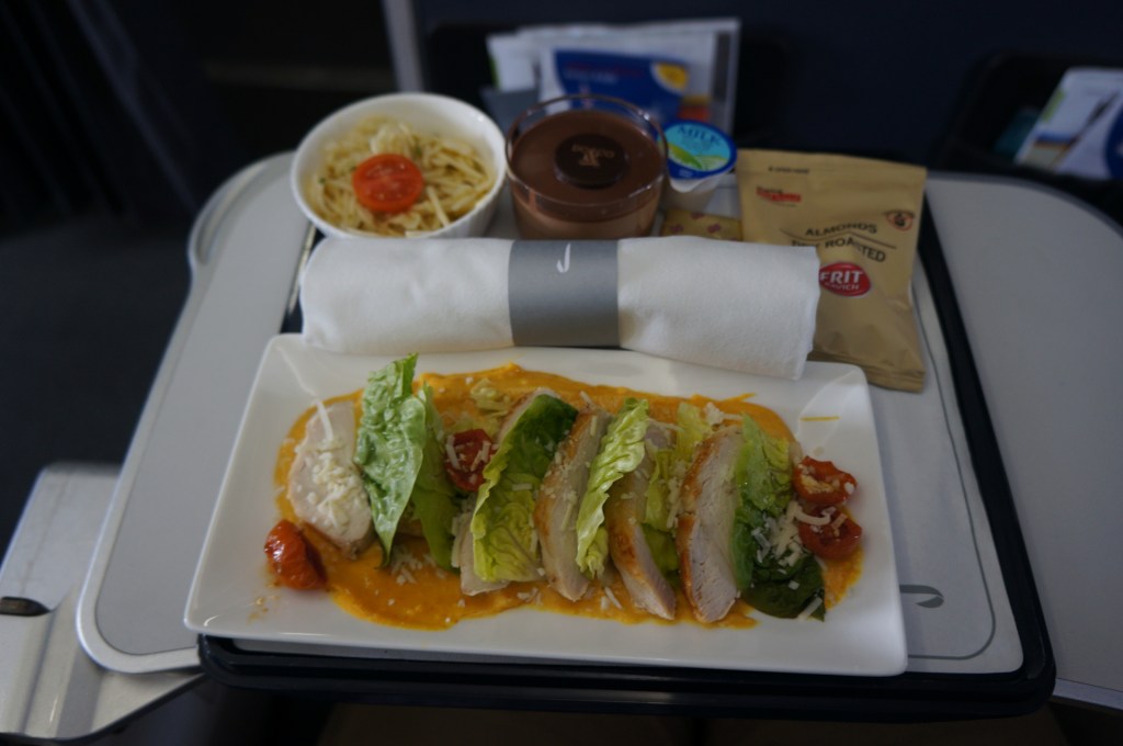 The food at least was surprisingly good. Our last run of Club flights was during panini gate, with our worst being a horrific half panini and salad leaf… Today we had what I can only describe as a Coronation Chicken Caesar Salad and despite being a touch heavy on the sauce it looked and tasted great. It was also distinctively British which when flying home on BA is what you want. The bread rolls were warm, the celeriac side salad was tasty as well. However, that deep and dark Do & Co chocolate dessert was a real winner to finish the meal. I did order a coffee to cleanse the palate but sadly it still tastes like utter crap.