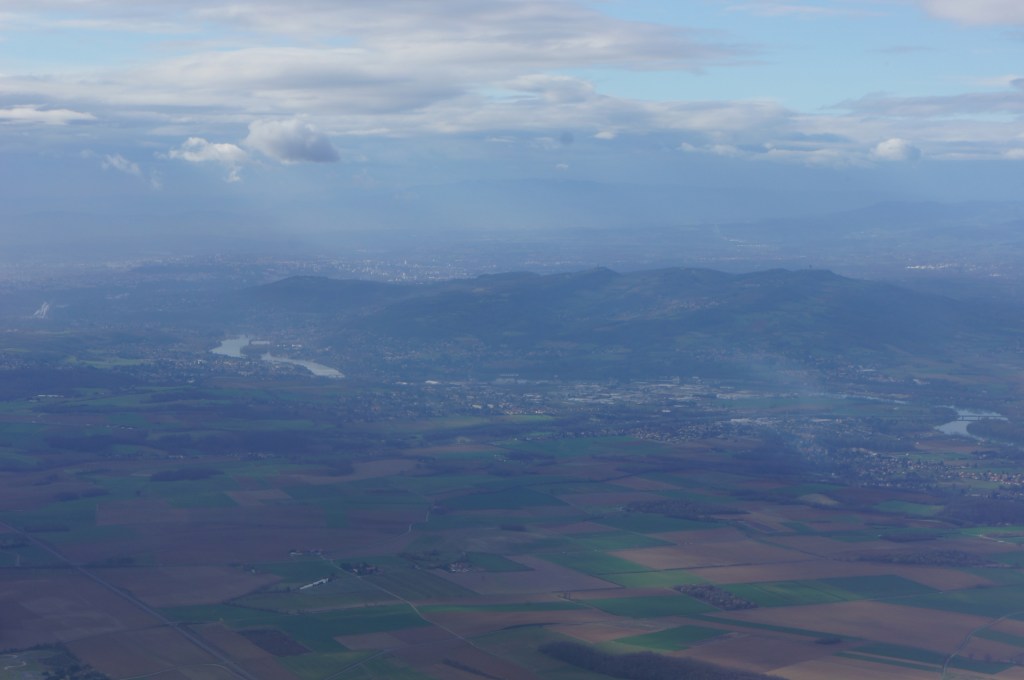The pilot promised us turbulence but thankfully there were only a few bumps. Instead we had an overcast view from the window with only the occasional exciting cloud formation for company and a nice view of Lyon on our final approach. So sorry, not many pretty pics this time. 11:25
