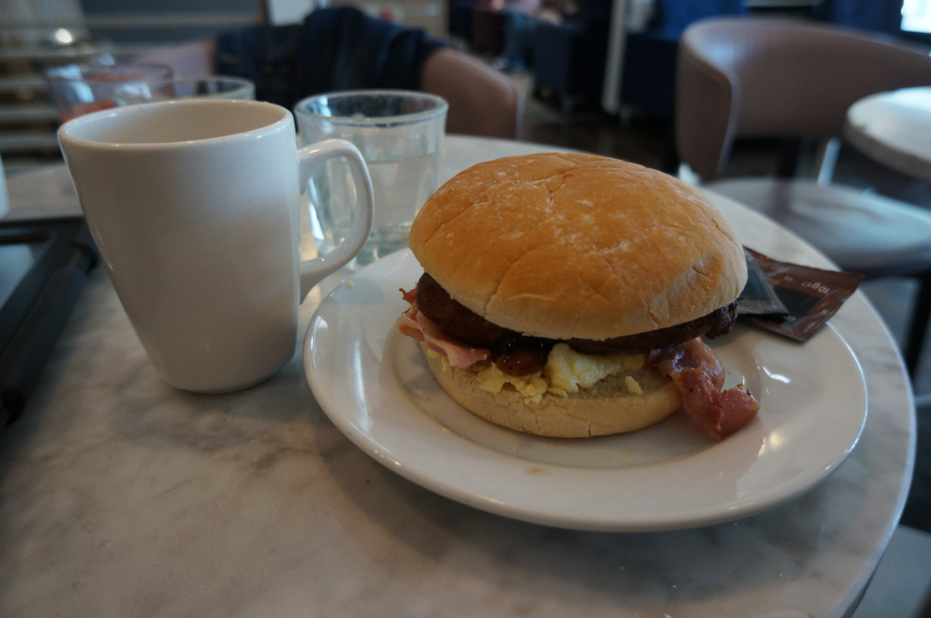 The food spread consisted of all your Great British breakfast favourites: scrambled eggs, bacon, sausages, beans as well as pastries and bread rolls. There was also fresh fruit, a selection of yogurts and cereals as well as two bean to cup coffee machines.