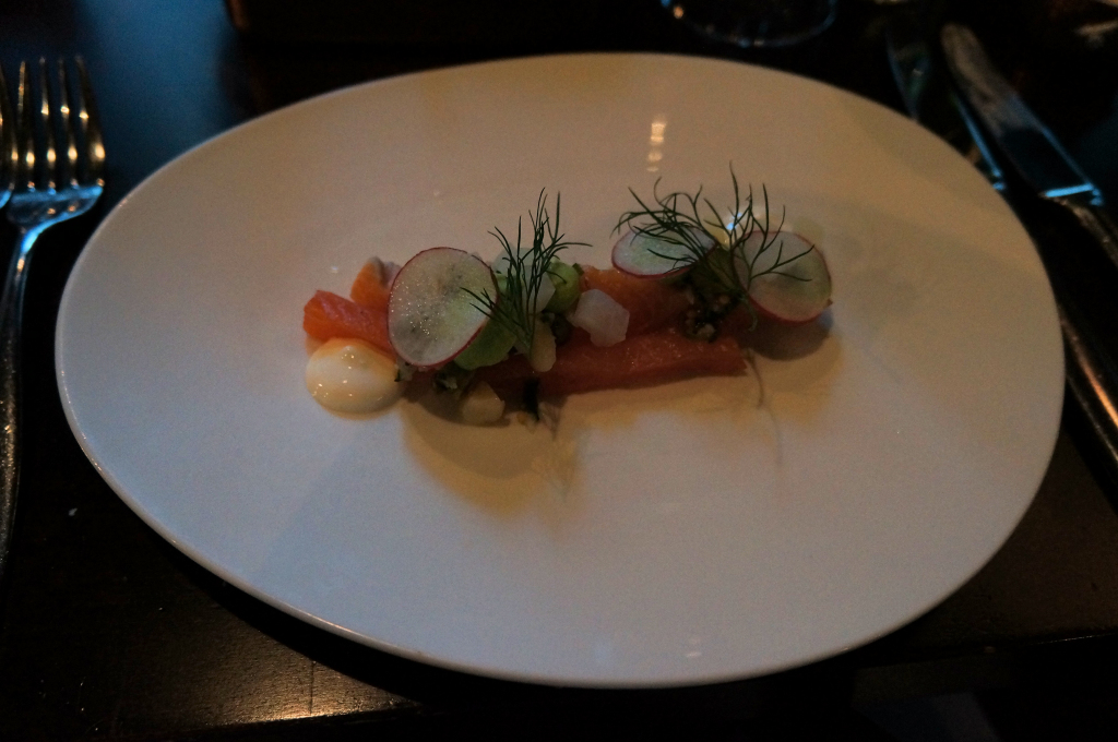 We didn’t plan our stay in Helsinki with any great detail and chose to eat at Muru as it looked reliable and had decent reviews. According to their website they offered one option of four courses for €52 each. Yes, a little pricey but not crazy, especially as lots of the cheaper spots were closed due to a bank holiday. We were soon seated at the back of the restaurant and the staff were happy to speak to us in English. Service was largely warm with a degree of the famous Scandinavian bluntness throughout. On arrival it also turned out they had an a la carte menu (offered but not shown or priced) as well as wines by the glass (not priced) and a wine pairing not offered or priced.
