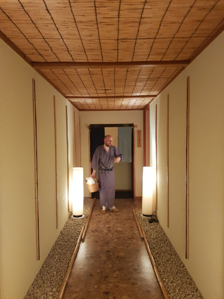 We were shown up to our room and helped to settle in. We picked the Japanese style room and it looked and felt like the slice of classic Japan we’d hoped for, with paper screen doors, tatami mats, yukatas and slippers. I made myself some green tea and worked on this trip report whilst Anne-So relaxed for a bit.