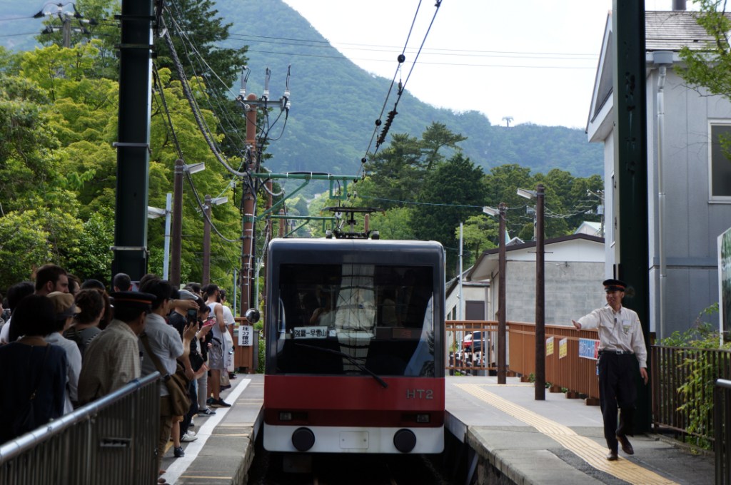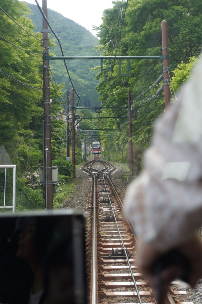 Next up was the cable car. But more in the sense of the San Francisco one than what us Brits might call a cable car which in Japan is called a ropeway. In France this type of train would probably be called a funicular. Having taken an extended drinks and toilet break we ended up being first in line and enjoying beautiful views through the drivers cab.