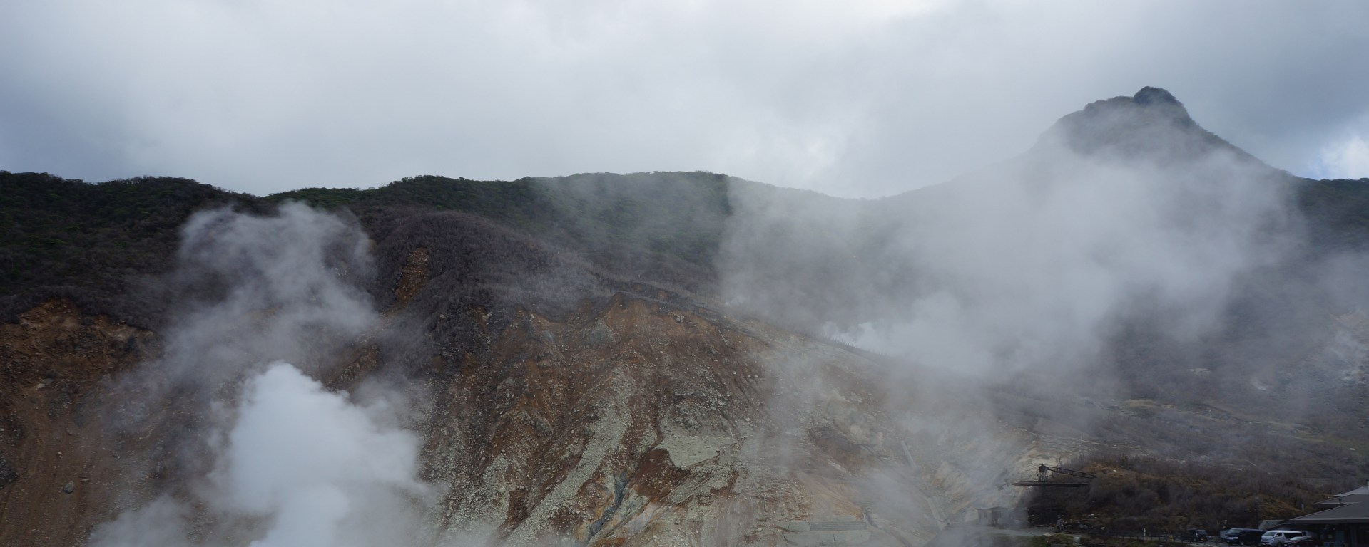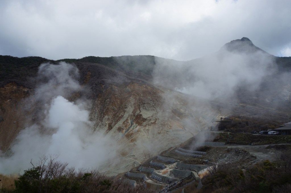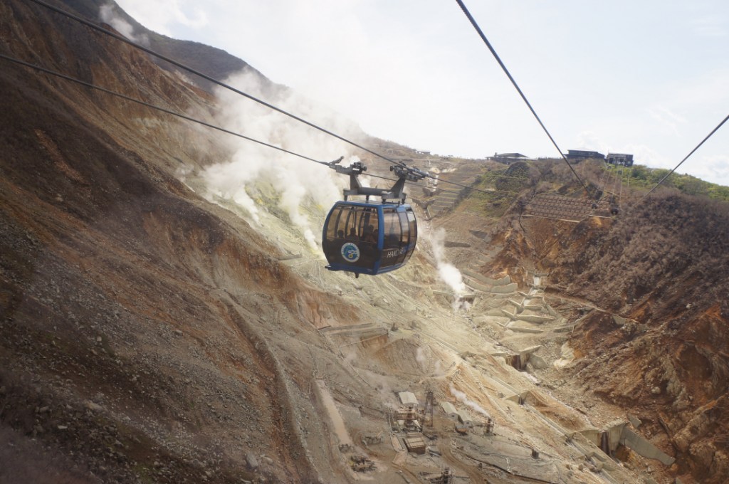 After that was the rope way, or cable car as I’d call it. Anne-So would probably call it a téléphérique or more accurately a nightmare. The views were great including the expected volcanic clouds of sulphur spewing out of the mountainside. We also managed a few decent sightings of Fuji-san dancing between the clouds.