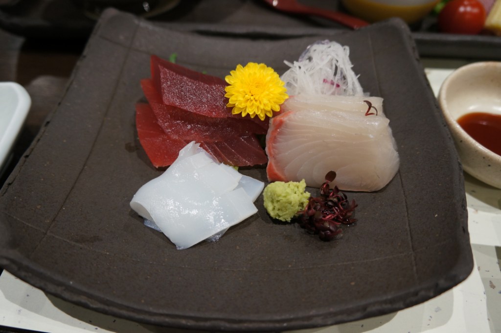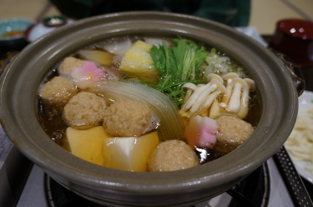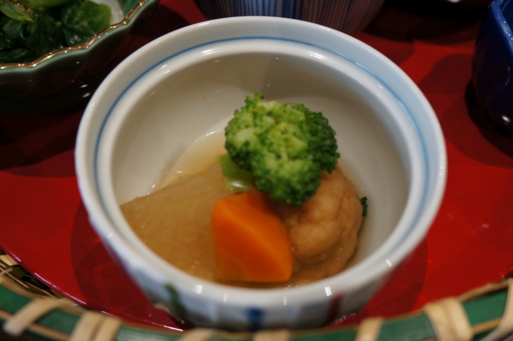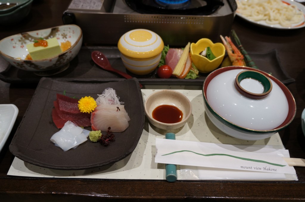 There was a bubbling hot pot of veggies, noodles, sashimi, salad, rice, miso soup, pickles, fruit and lots of other beautiful odds and ends at our table. We started wrong, probably finished wrong and most certainly broke every rule, written or otherwise on kaiseki style dining. Oh well, other than two dishes it was delicious from first bite to last. Overall we were more than happy. Our first attempt at trying traditional Japanese cuisine ended well and set us up nicely for a few meals to come later on in the trip.