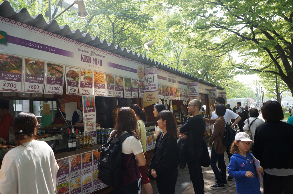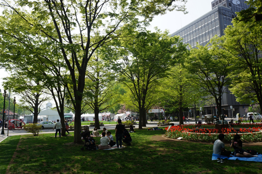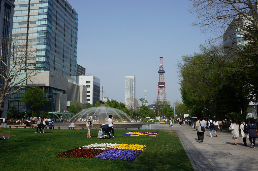 We summoned up some reserves of energy and feeling brave we decided to walk to the rather lovely Odori Park. On the plus side we were never more than five minutes from a toilet stop. On the downside there was also a massive food festival in the park. We were definitely carrying some bad karma from somewhere.