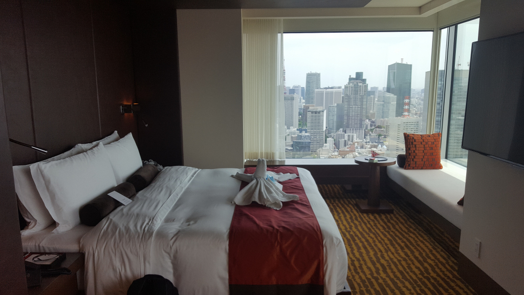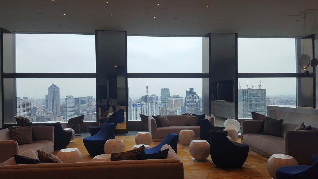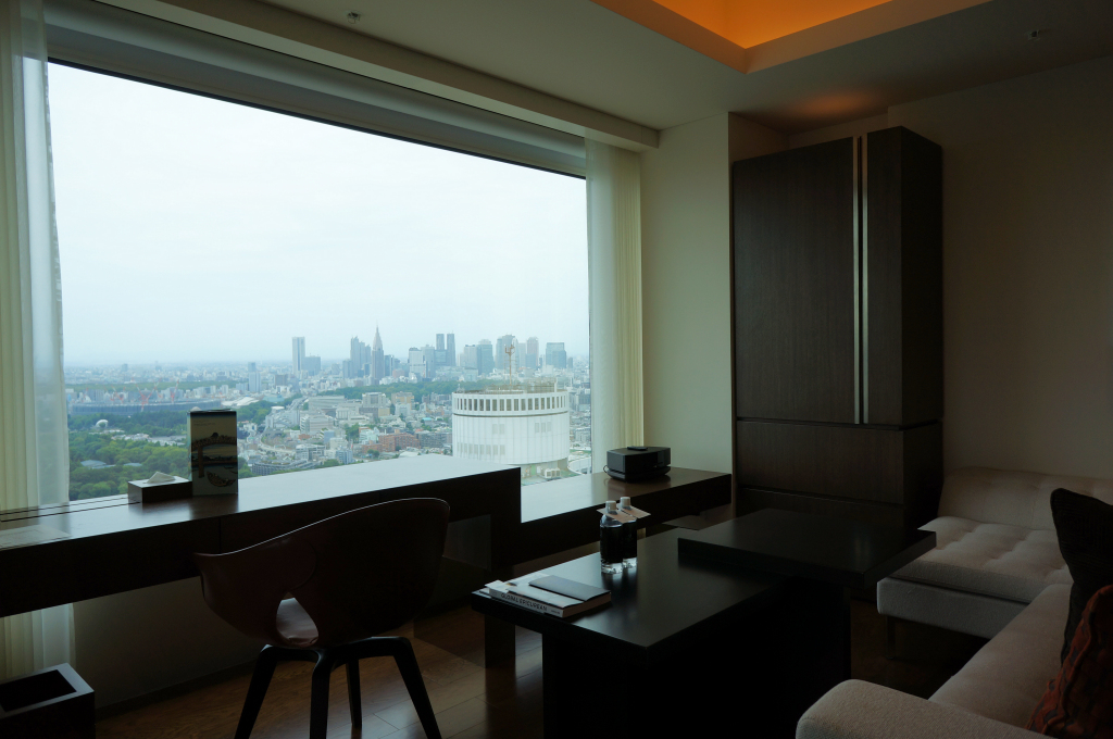 We sped up to the top floor lobby and whilst I was getting us checked in Anne-So was invited to take a seat in the lobby where she could enjoy the panoramic views across Tokyo. Check in was straightforward but took a little while as we were early and the hotel had kindly upgraded us from the Club Deluxe room we had booked to a Grand Deluxe Corner room which was about 50% bigger and worth a fair bit more.