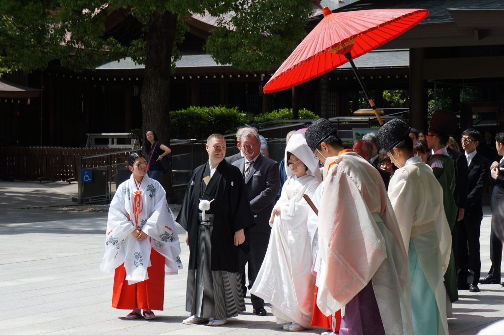 Filled with tall shady trees it was a welcome relief from the heat. After a short walk we found the main shrine and lucked out as there was a wedding procession. There is always something nice about seeing two different cultures and backgrounds coming together and we enjoyed spying on the procession for a little while.