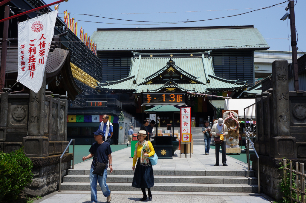 The plan for the morning was to see the spectacle of Fukagawa Fudo-do with its mirror room and fire ritual. It was a short hop on the Tozai Line from Otemachi to Monzen-nakacho and from there just a short walk past some interesting antique shops or perhaps junk stores (we couldn’t tell) to the temple.
