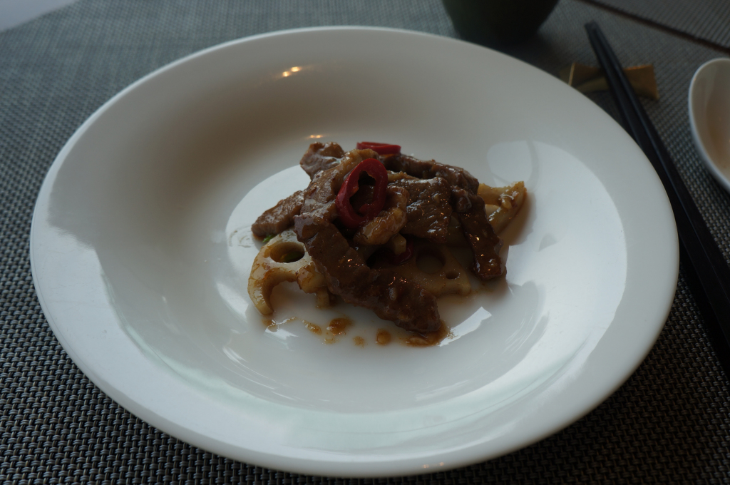 Checkout was easy enough and the hotel kept hold of our cases for the rest of the day. We were then escorted up to the hotel’s Michelin starred Amber Palace restaurant where we’d booked a table for lunch. The place was a bit of a maze to find and we were glad to have someone walk us up. No expense had been spared with the setting and we were quickly acknowledged by the staff who confirmed our reservation. There was a short wait whilst a party was leaving and we were given a nice spot by the windows with views of the city.