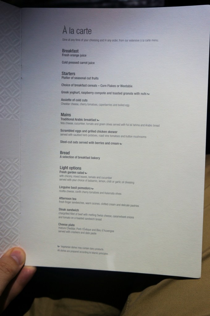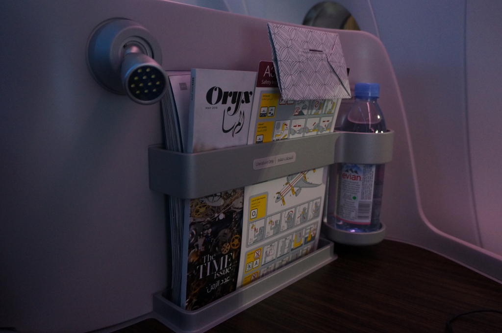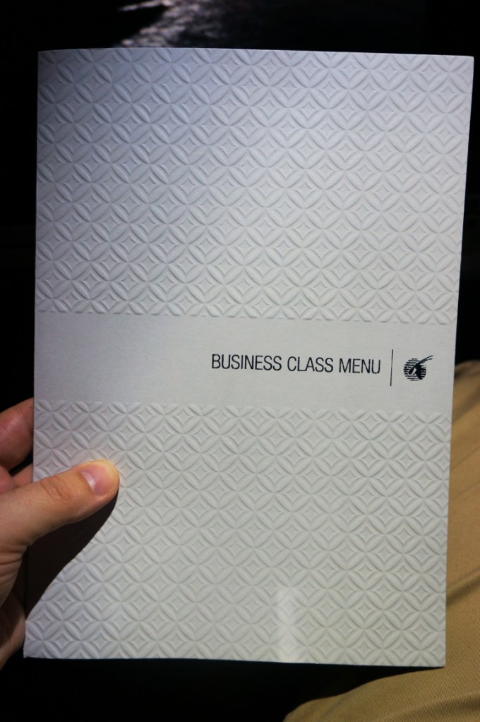 The Brics amenity kits were back again after the Armani ones to and from Japan including a very fetching light blue male kit which was definitely our favourite of all the kits received. There was also another round of pyjamas but I didn’t feel like changing. As per usual the sense of space is fantastic on the QR Dreamliner thanks to the open design of the cabin making it feel very relaxing.