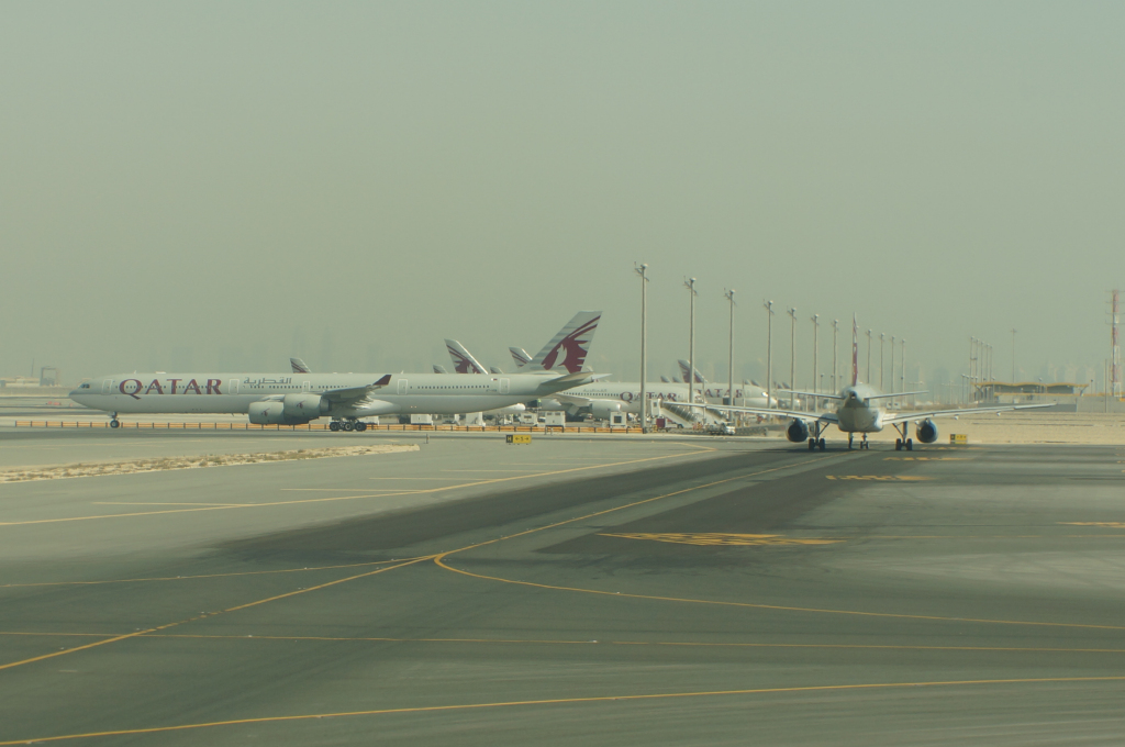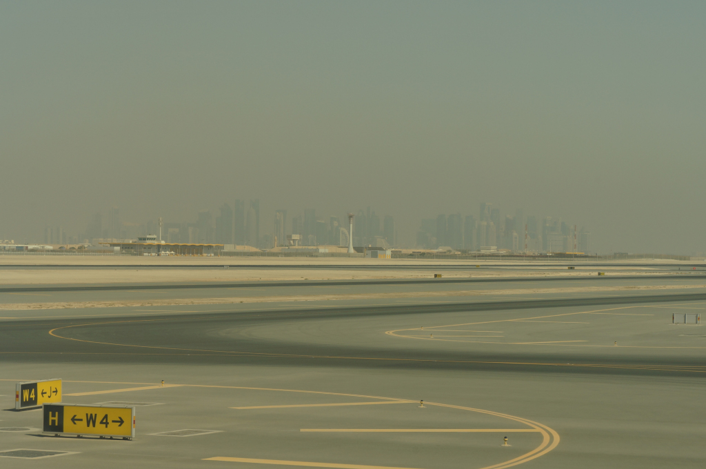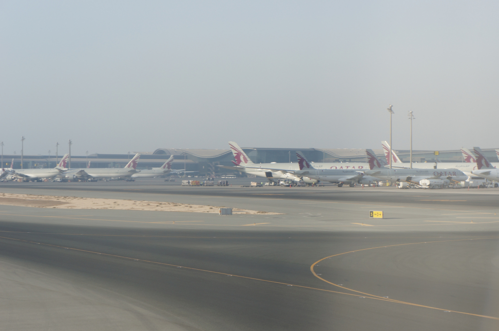 Twelve hours or so after we took off we arrived into Doha on a beautiful morning. We loved looking out the window as the sun rise reflected off the ocean.