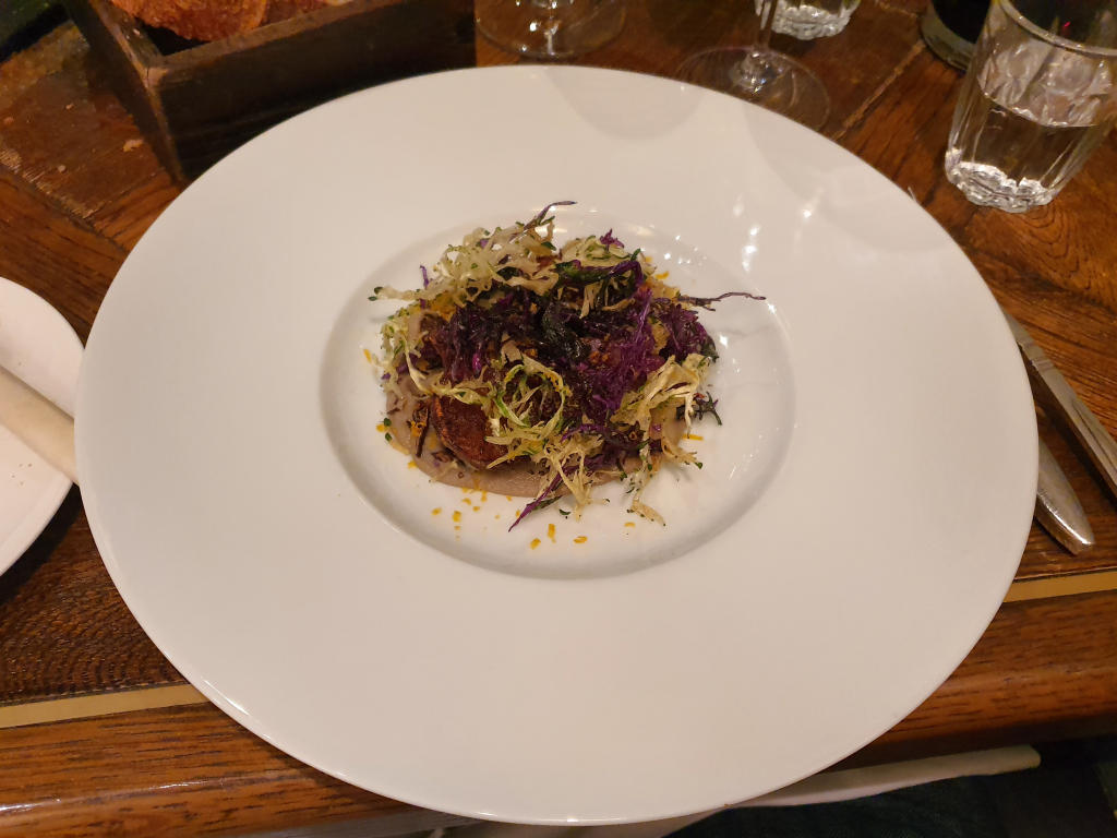 We headed back to the station and took the tube to the West End making a slow walk towards our lunchtime rendezvous at Social Eating House which promised fine dining in a relaxed and casual atmosphere. I thought that the service was on the whole very friendly, my birthday celebration was acknowledged and genuine conversation was initiated. The downside to the experience was purely down to the dining room’s ambience with too many tables being squeezed in to the dining area and the acoustics of the room amplifying the noise from the handful of groups present making it challenging to hear anyone not sat directly in front of you. It was also a little dark but that was made up for with the fun neon signs and the tables themselves were well lit.