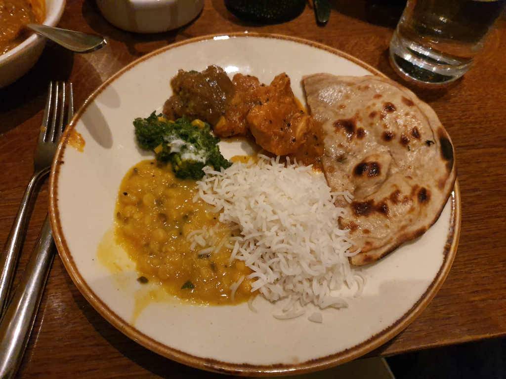 Meaty lamb kebab, sweet and sour chaat, heart-stopping butter chicken, a light prawn curry, rich aromatic daal and some wonderful carbs: rice to balance the spice, potatoes to bring it back and rotis for mopping up that gravy! There was also a side of raita in case it all got a bit too much! Safe to say I cleared my plate with ease and was happy to help anyone struggling.