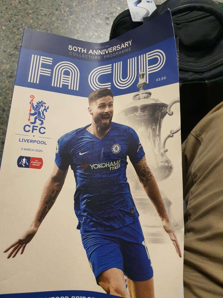 Thankfully the rest of the afternoon raced by and it was time to attend the Chelsea vs Liverpool FA Cup quarter final. By now I was convinced this match was cursed. From the fiasco with the ticket prices being lowered, raised and lowered again, to my failed attempt to take my friend N to the game. Then of course, our boiler starting its leak no sooner had my ticket been booked. If only it had ended there but with my wounds still fresh, a spoonful of salt was rubbed happily into them by the Royal Mail as my ticket got lost in the post. So rather than my usual 2019-20 post-work, pre-match ritual of a tasty Westfield food court dinner from one of the many now excellent eateries, followed by the crush of the tube I instead left early to visit the box office and claim my replacement ticket.