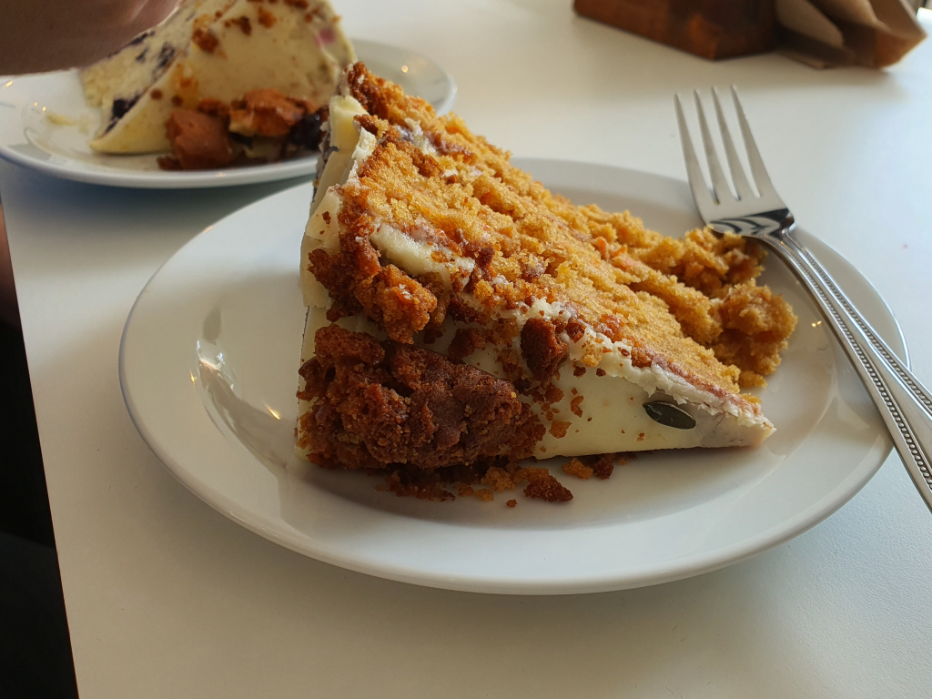 My carrot cake was sweet, moist and filling; it provided a nice contrast to the mild acidity of the black coffee I’d chosen to accompany it.