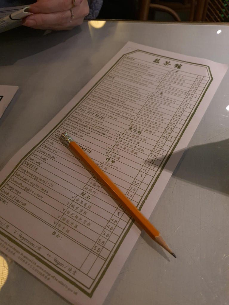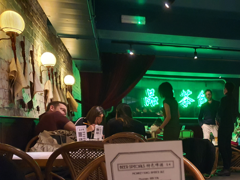 There were Cantonese cover versions playing on the old fashioned stereo system, an extensive and expensive drinks menu fashioned in the style of an old newspaper and they had a wonderful Insta friendly neon sign on the back wall to give that famous green glow to your photos. Best of all we had a table till 7:30 which was when the play we had tickets for that evening started.
