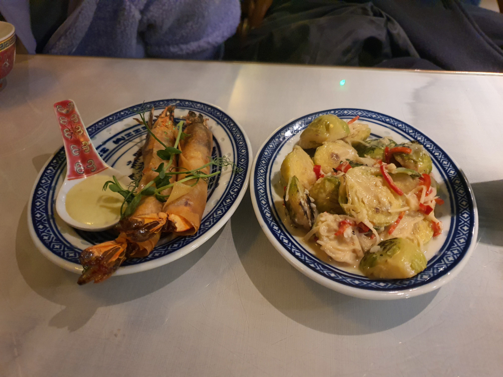 Anne-So and S devoured their whole prawn spring rolls, saving just their poor, sad little heads.