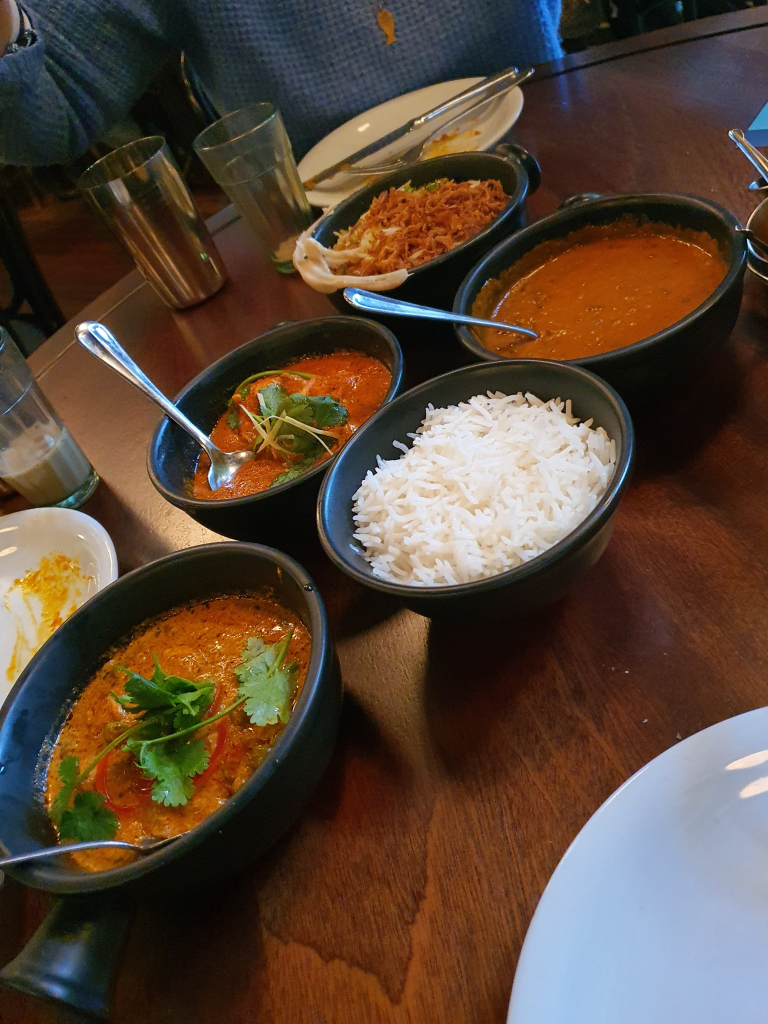 The buttery pau bhaji was shared, the crispy okra fries shared, the delicious black daal shared, though the creamy mattar paneer, fragrant Awadhi lamb biryani and rich chicken ruby were heavily guarded by their respective owners…
