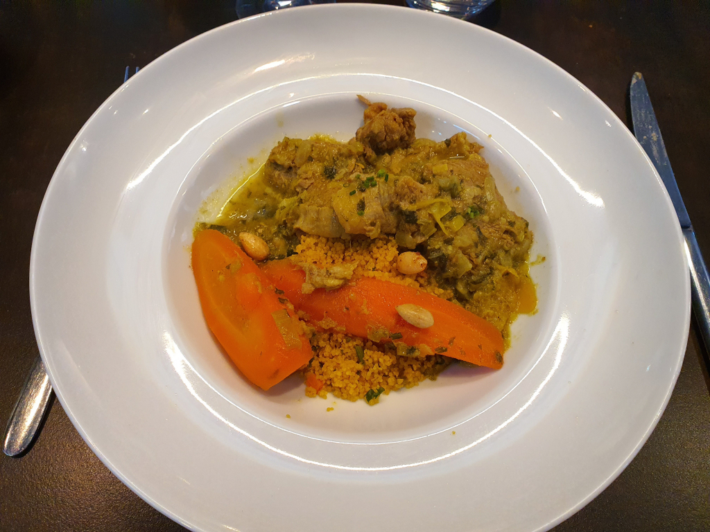 For our mains Anne-So and I enjoyed a plate of tender spiced veal that melted in the mouth, accompanied with aromatic couscous and a lightly spiced vegetable stew.