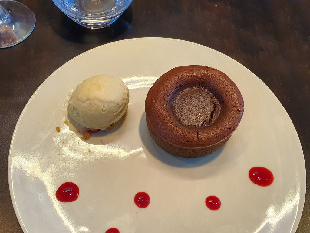 There was also a chocolate fondant on the menu and having seen the gooey molten core ooze out on to the plate of the man at the table next to me my choice was already made. I was not disappointed!