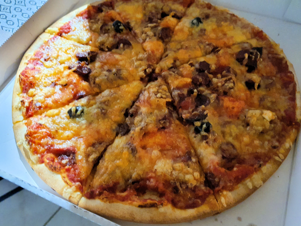 We’d noticed earlier in the evening that despite the restrictions supposedly being in place, the two pizzerias in town were still open for business. Not feeling in the mood to cook we decided to order in again. Were they the greatest pizzas you’d ever eat, hell no! But after my lunchtime fiasco where I thought I’d set the oven on fire I was done cooking. It also helped that I was also a touch tipsy from whisky and wine!