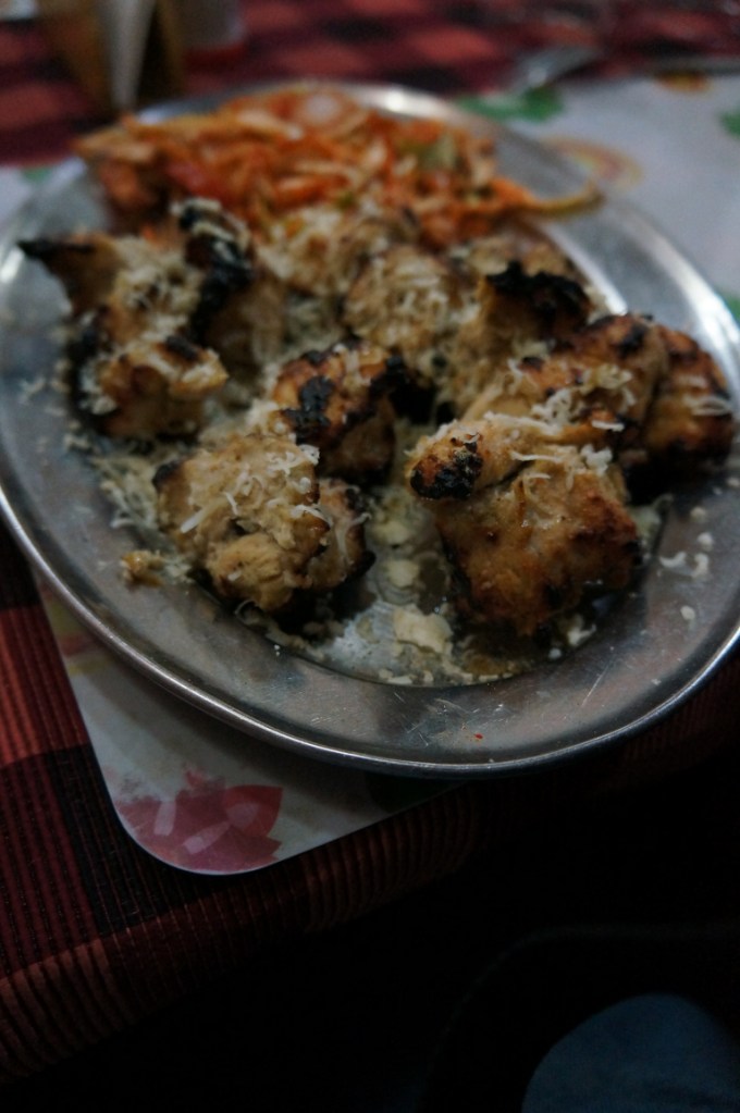 Having worked up quite the appetite we were hungry for dinner. Our guide book suggested that Kabab Korner was, “the place for meat eaters who are tiring of South Indian vegetarian food. It doesn’t look much from the outside, but here you can tear apart perfectly grilled and spiced chunks of lamb, chicken and, if you like, paneer, sopping up the juices with pillowy triangles of naan.” I have to confess our book sure was right when it said this place didn’t look like much, it really didn’t! Grubby and a little worse for wear, the menu was the usual mix of Indian, Chinese and European options. I thought our food was alright, not as tasty as lunch, but as our book said, the meat dishes were definitely better than the vegetarian ones.