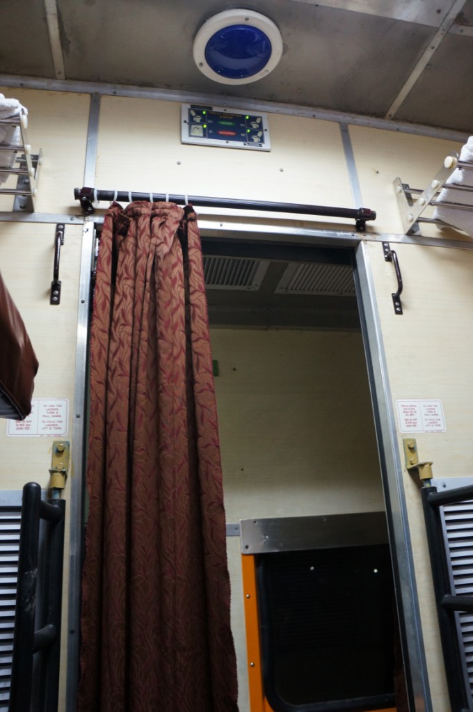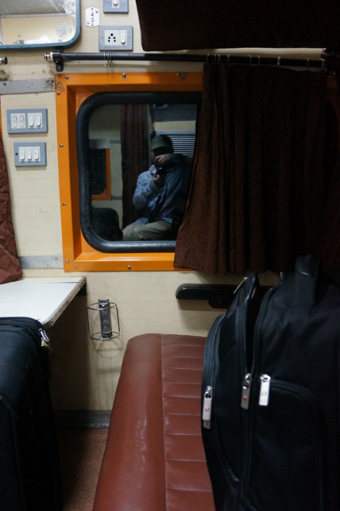 Us in AC1 and N & G slumming it somewhere back AC3 class. Much like first to business class on a plane AC1 offers slightly more privacy, space and food for a much higher price over the AC2 and AC3 coaches. Sadly the 45 minute train ride did not give us much chance to experience these benefits. When travelling first class on the Indian Railways you get your berth and seat information by checking the chart pasted up just inside the carriage as opposed to it being allocated at booking. Whilst it was completely unnecessary to do this journey in AC1 for the sake of completeness it was an opportunity too hard to turn down as these carriages are only on a few selected routes and can be incredibly hard to book.