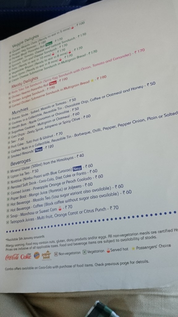 Unlike the now condemned chaos of the International Terminal at Mumbai Airport, the Domestic Santa Cruz terminal felt like modern bliss in comparison. It’s amazing how much a bit of extra space and organisation can do when it comes to improving the airport experience! Check in was straightforward enough, with one long, well policed, post office style queue that successfully prevented anyone from pushing in. Once we were checked in I managed to get myself in a jumble as our flight was departing from Gate A1 in Terminal 1C, stupidly I confused myself thinking we were departing from Gate 1C in Terminal 1A which had only gates 1-8 without the letter prefix. Thankfully all the gates and terminals were just a short walk from each other rendering my stupidity shortlived. It seemed I was not the only one to be disoriented by the airport and since our trip the authorities have reorganised Terminal 1 yet again!