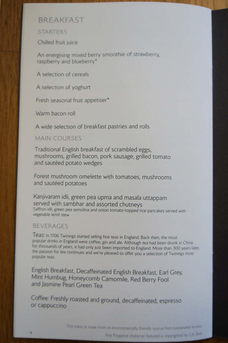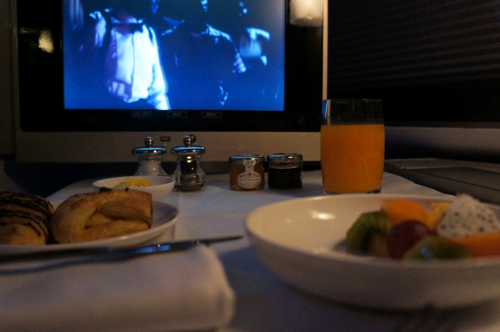 After seeing that I was awake I was offered some morning drinks, “How about one of those funny little coffees again? Would you like anything to eat?” asked the motherly FA. “I’ll have some fruit and a bacon roll in about half an our, thanks.”