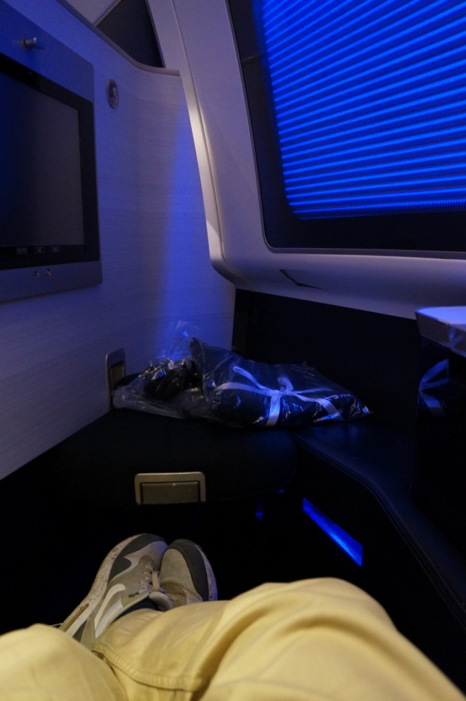 As I said, I was curious as to what kindly soul would kick up such a fuss as to have us booted out of our assigned seats. We very quickly found out as the conversation started with the words, “lunch”, “Keith Williams“, “complaint!” Seriously, the nerve of some people. From my many years of working with the public this was the kind of person who would make me cringe immediately as you knew whatever you did they would either find fault or politely threaten your job if you dare told them what they had asked for was not possible. It was obvious he was an important customer to BA but could he not have used a little more humour and tact like the man in 1K? I know there are always two sides to every story and that I should be less judgemental but it did make me wonder why he continued to fly with an airline he clearly didn’t like. As we prepared for departure a number of passengers started changing into their dark blue first class sleeper suits. Shortly before take off we received a friendly welcome visit from the Cabin Service Director (CSD) and despite being a lowly Blue member of BA’s Executive Club I still got a thank you and a handshake.