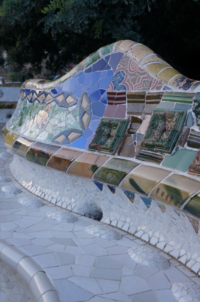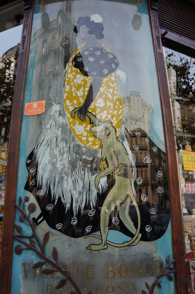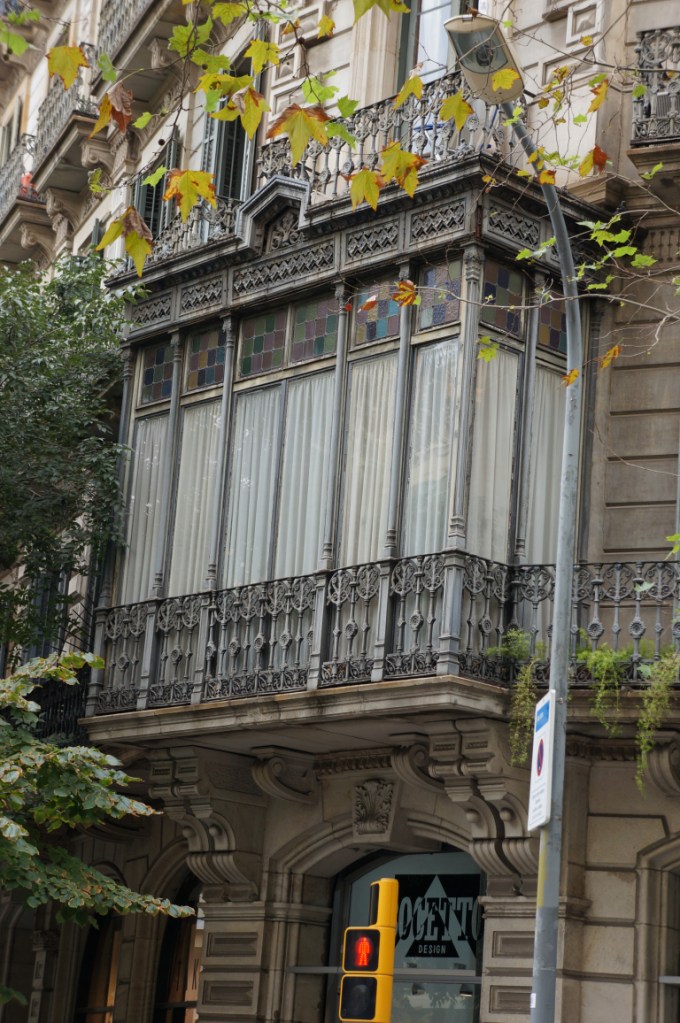 We did our book’s suggested walking tour in reverse order by starting out from Urquinanona and zigzagging up towards Diagonal. As we walked with our eyes fully engaged we realised we’d already passed and missed some of these wonders whilst hunting for dinner the night before and cursing our luck when I broke my suitcase changing trains at Passeig de Gracia at the start of our trip. You could say our initial experience was like Locke’s in Antonioni’s film The Passenger as at that point we were simply attending an appointment and our surroundings were irrelevant. Perhaps like David Locke we too were at first unconsciously sucked in to the world of Gaudi, before later purposefully seeking it out, though of course our motivation was quite different!