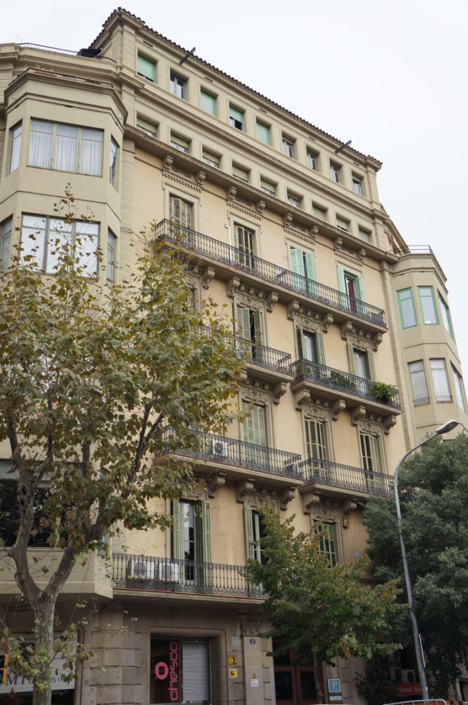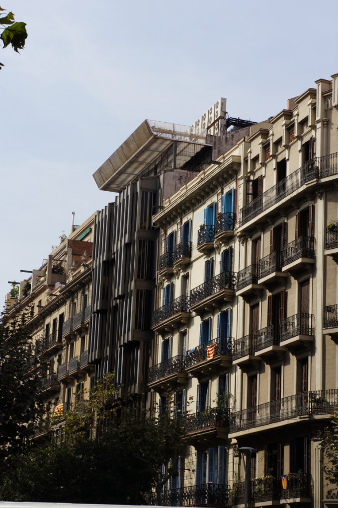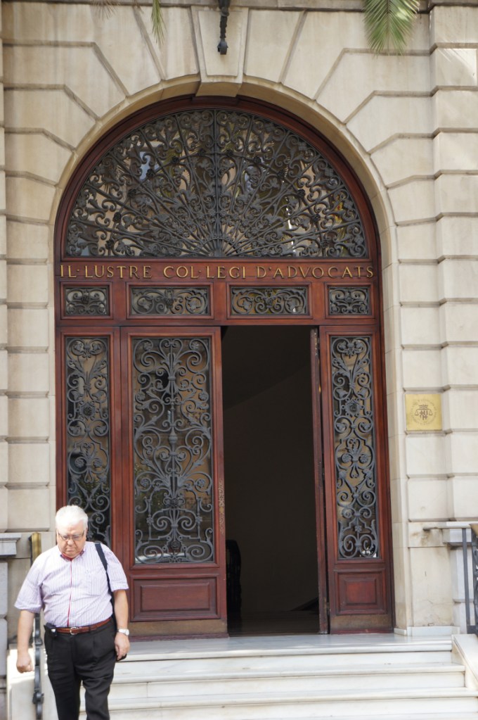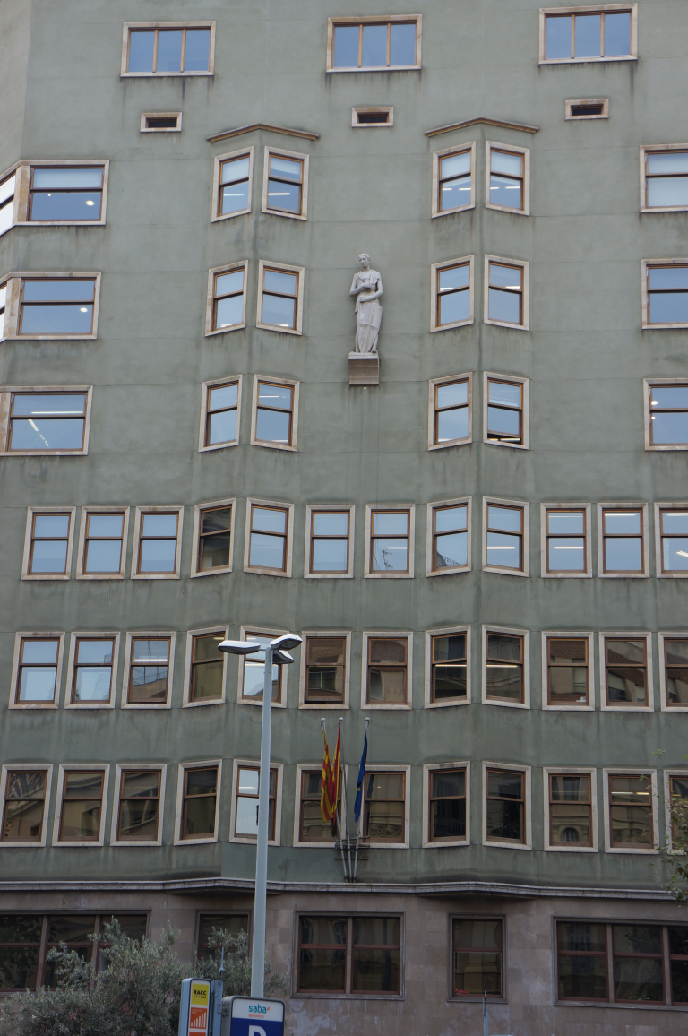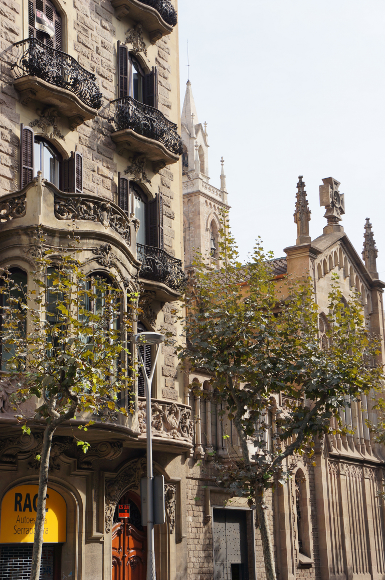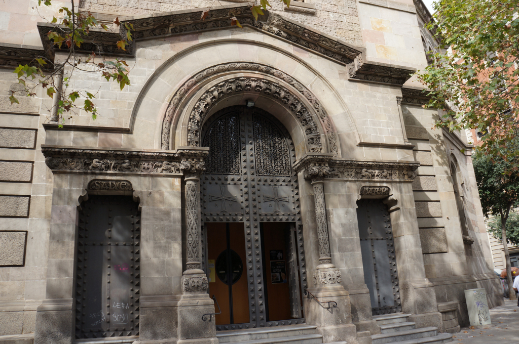 We kept walking along Carrer de Casp with the white columned building at number 46 catching our attention. We continued looking upwards at the intricate stone work of the Church of the Sacred Heart and the contrasting Brutalist blandness of the Ministry of Justice of Catalonia.