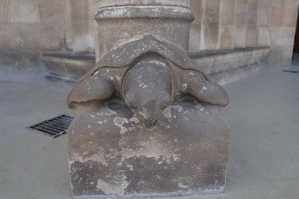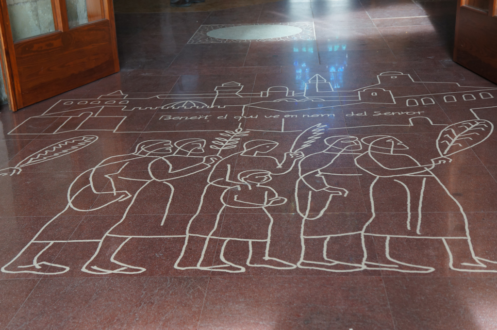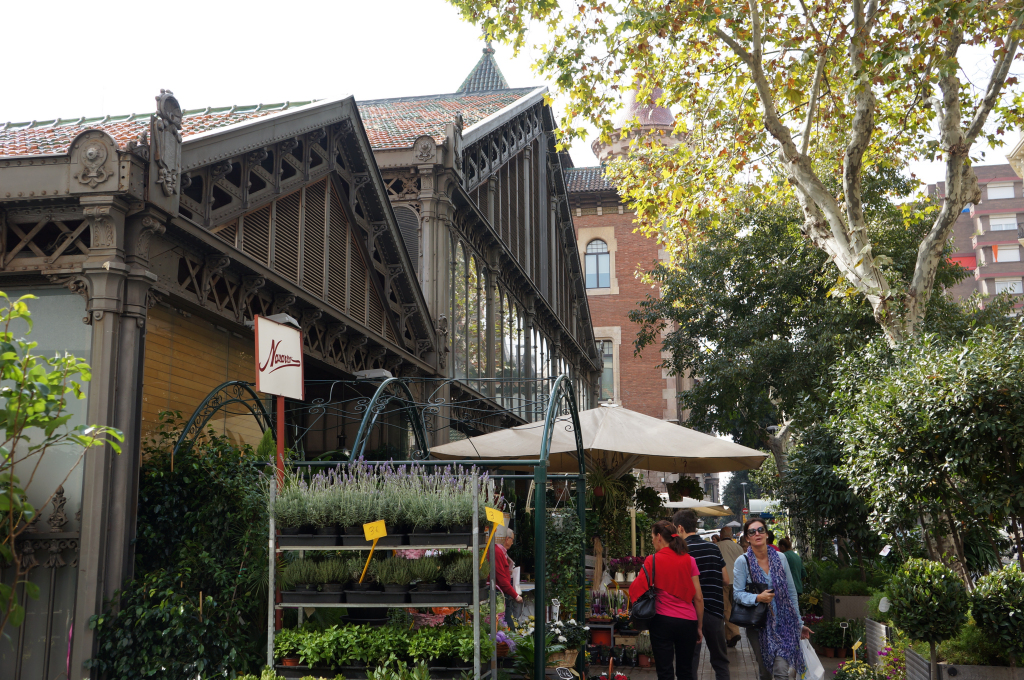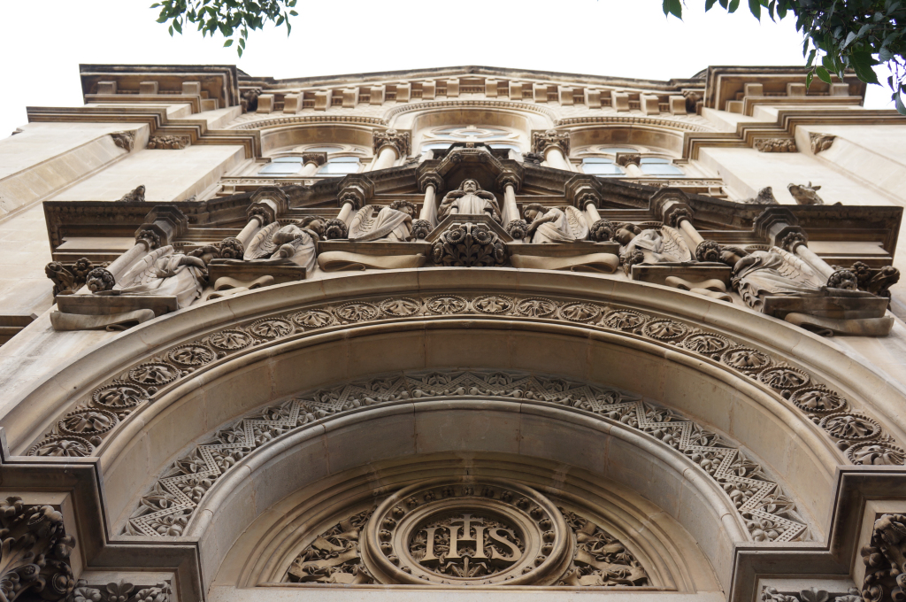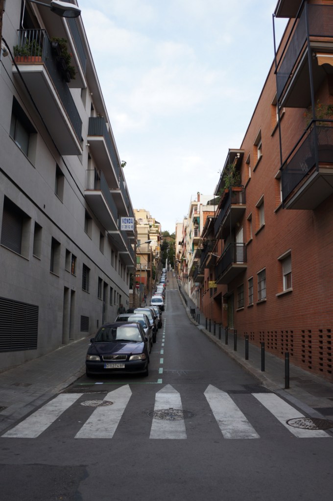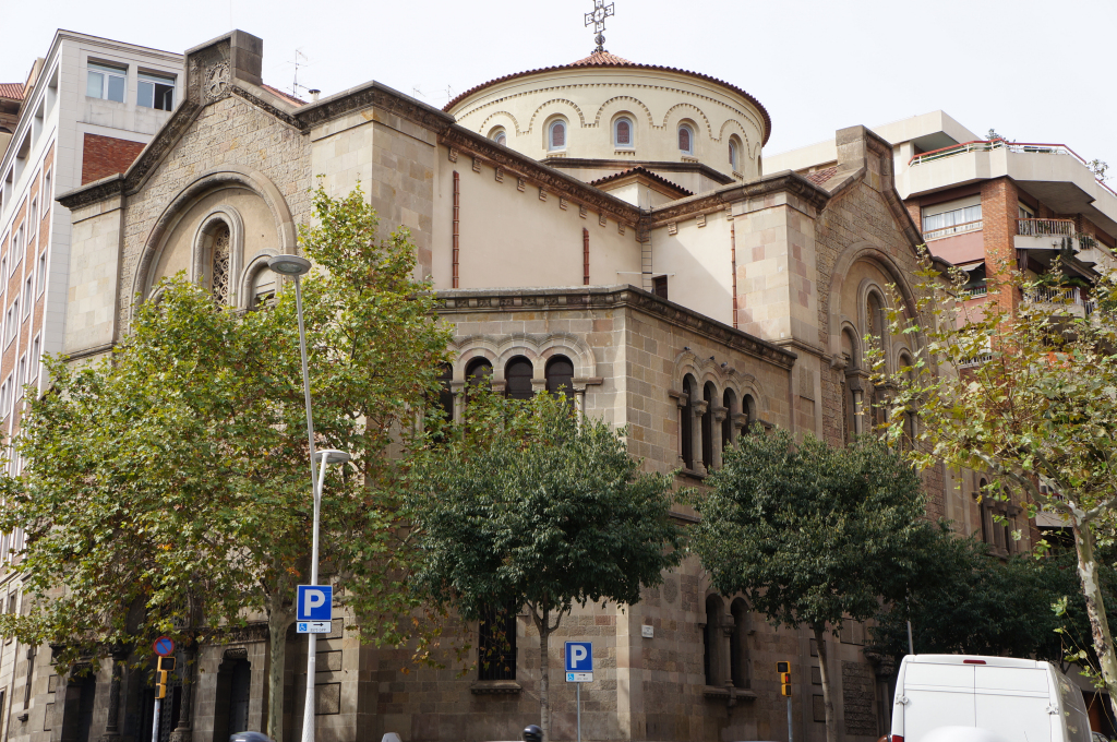 We kept walking along Carrer de Casp with the white columned building at number 46 catching our attention. We continued looking upwards at the intricate stone work of the Church of the Sacred Heart and the contrasting Brutalist blandness of the Ministry of Justice of Catalonia.