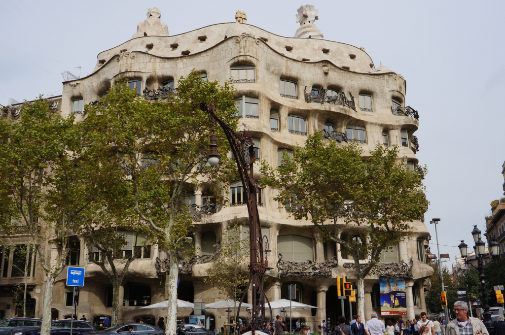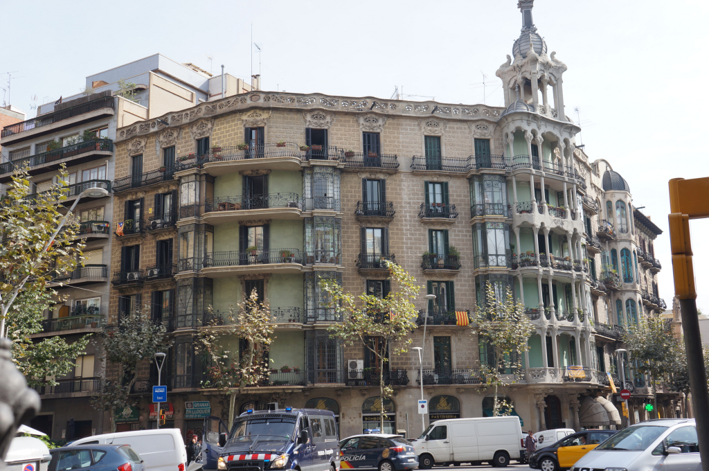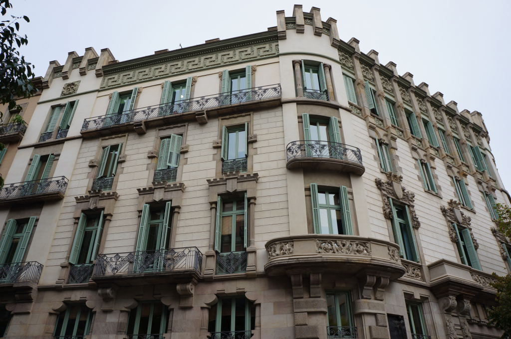 After our previous day of exploring the well worn track, we’d had our fill of old Barcelona and its beautiful Gothic monsters. We now wanted to explore some more of the city so by way of contrast we chose to start our second day with a Modernisme walk around the Eixample area as recommended by our guide book. But first breakfast! We picked out a healthy dose of carbs and caffeine from one of the bakeries near our hotel and although it didn’t look that exciting we had a great cup of coffee and some lovely pastries and all at a fraction of what we’d usually pay in London.