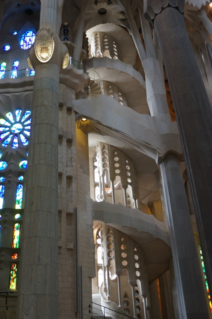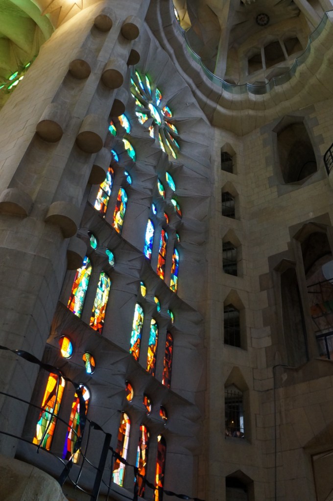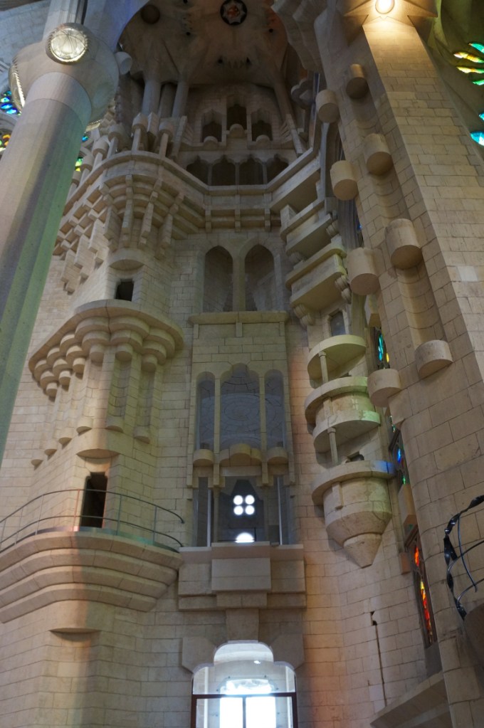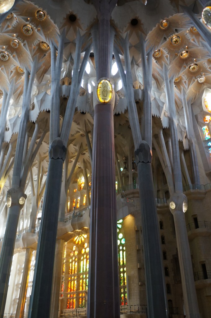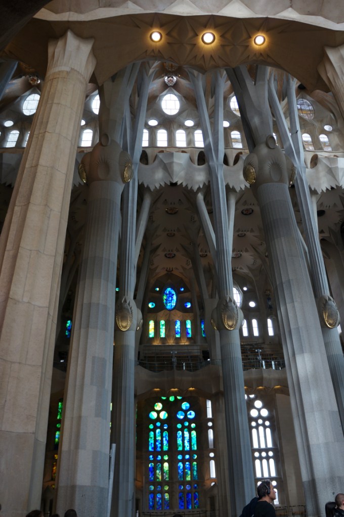 After stuffing ourselves with tapas we headed back on the ever efficient and convenient metro to Sagrada Família and immediately our breath was taken away and that was just at the size of the queue to get in! In actual fact the queue moved rather quickly and we were soon inside though not before some very strange people watching moments…