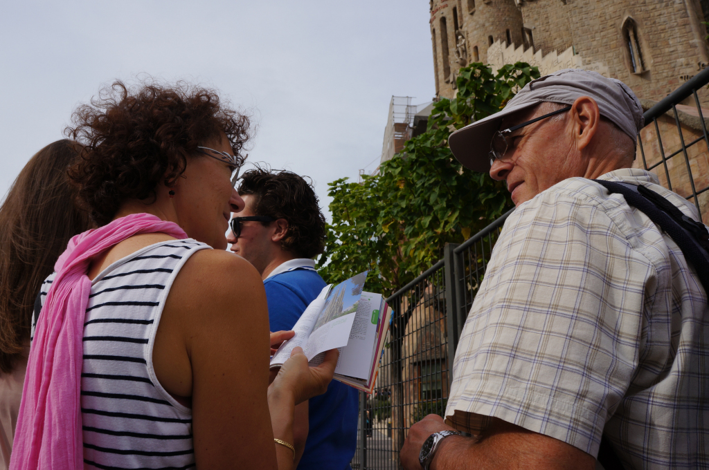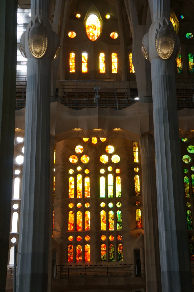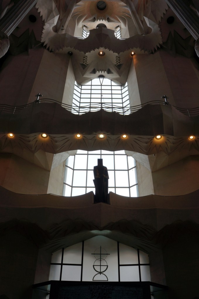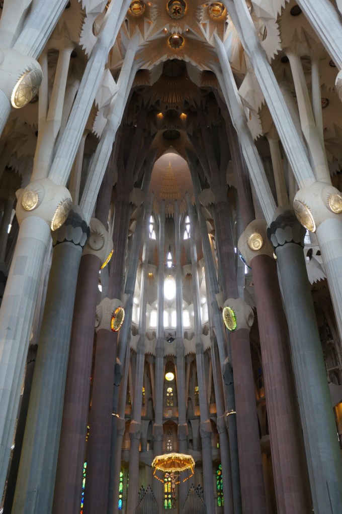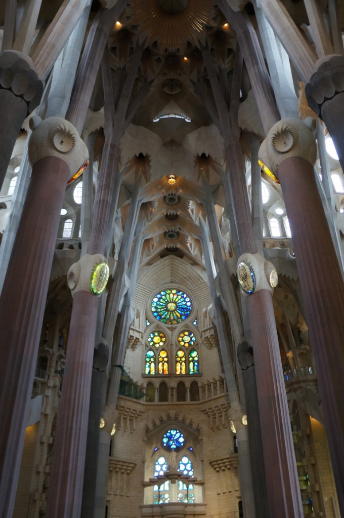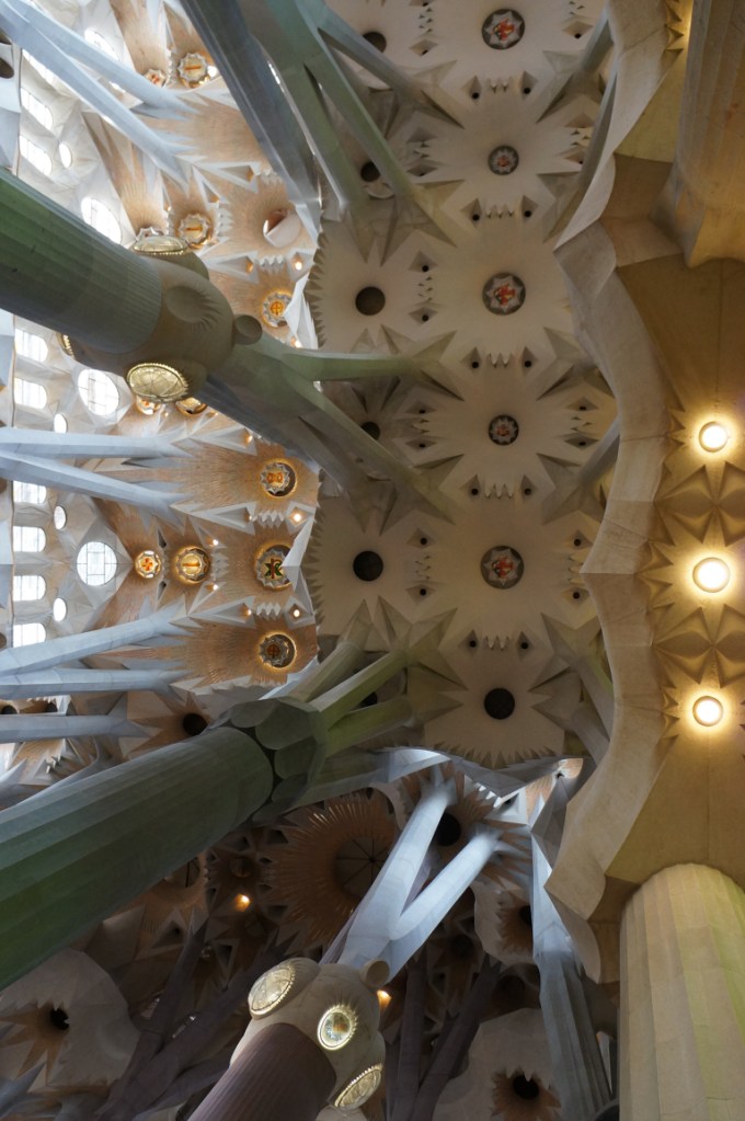 After stuffing ourselves with tapas we headed back on the ever efficient and convenient metro to Sagrada Família and immediately our breath was taken away and that was just at the size of the queue to get in! In actual fact the queue moved rather quickly and we were soon inside though not before some very strange people watching moments…