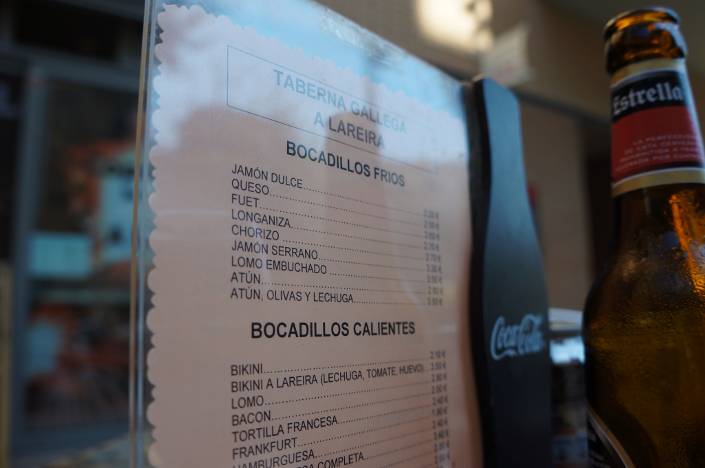 The trip downhill was not without incident as I got us horribly lost trying to find a restaurant from our guide book that didn’t seem to exist in real life. We decided to call it quits and instead returned to the neighbourhood near our hotel for lunch. In the end this proved to be an inspired choice as we found a small tapas bar, Taberna A Lareira which included a menu featuring a frighteningly literal English translation of the dishes.