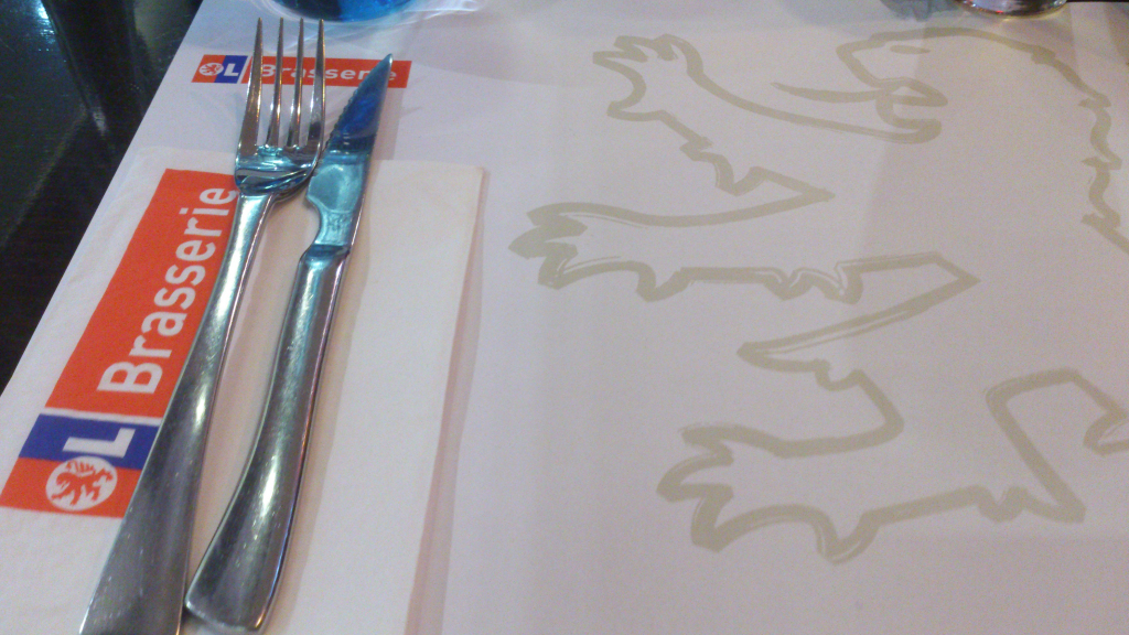 Instead of paying over the odds to change our tickets we decided to patrol the airport in search of paying over the odds for our food instead. With the fancy looking Atelier des 2 Rives restaurant closed on weekends and everywhere else offering a sandwich it was a toss-up between Pizza Hut and OL Brasserie (As in Olympic Lyonais the football team).