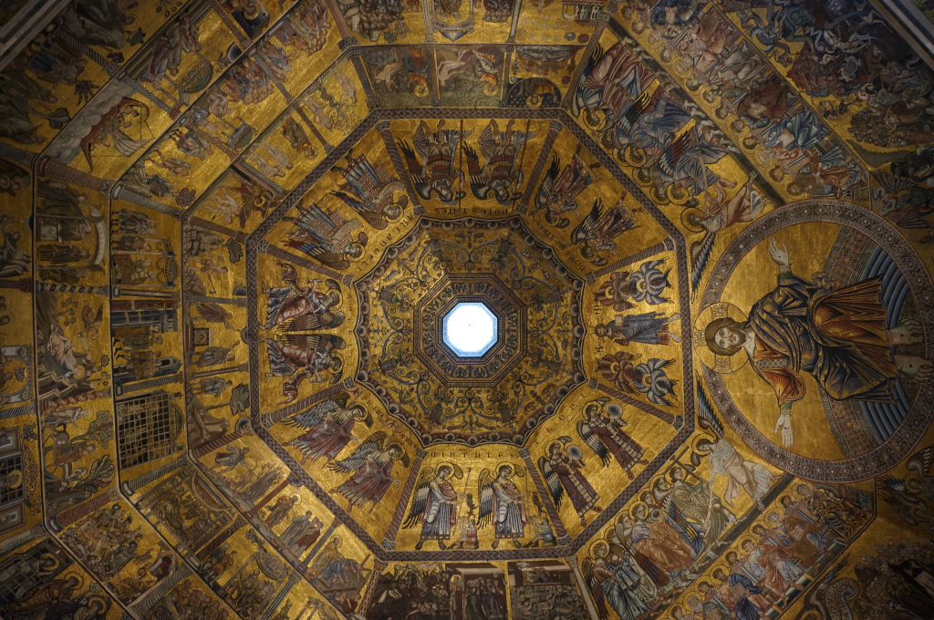 Slightly exhausted I met Anne-So at the base of the bell tower and we rested together in the Baptistery, enjoying the beautiful ceiling whilst reading all about it in our guide book.