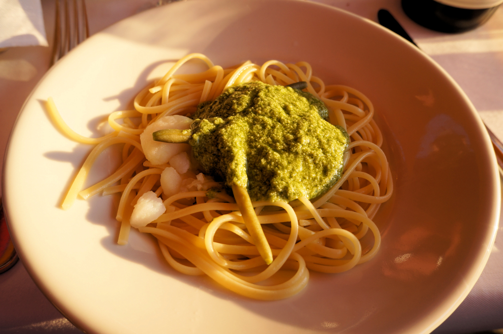 The village of Monterosso is split into two; the new town where the train arrives and the historic old town, which had been tragically damaged by floods a few years prior to our visit. The new town consists of a main road with some cafes, bars and restaurants with the beach in front of them. Monterosso is also notable for being the only village in the Cinque Terre with a sandy beach. However, it’s not quite what it seems as the sand is apparently imported by the locals each year to top up the beach. Despite the less than local provenance of the sand it is clearly ahead of the other villages which only have rocks or at best pebbles on which to sunbathe.