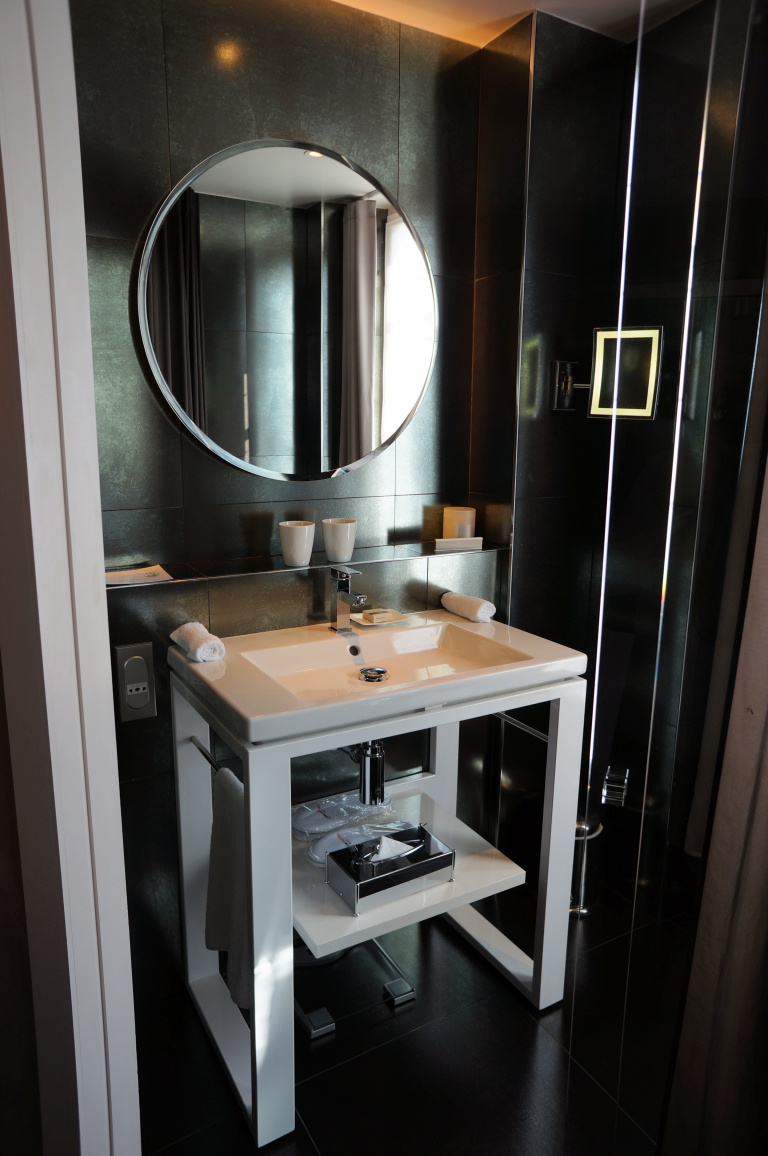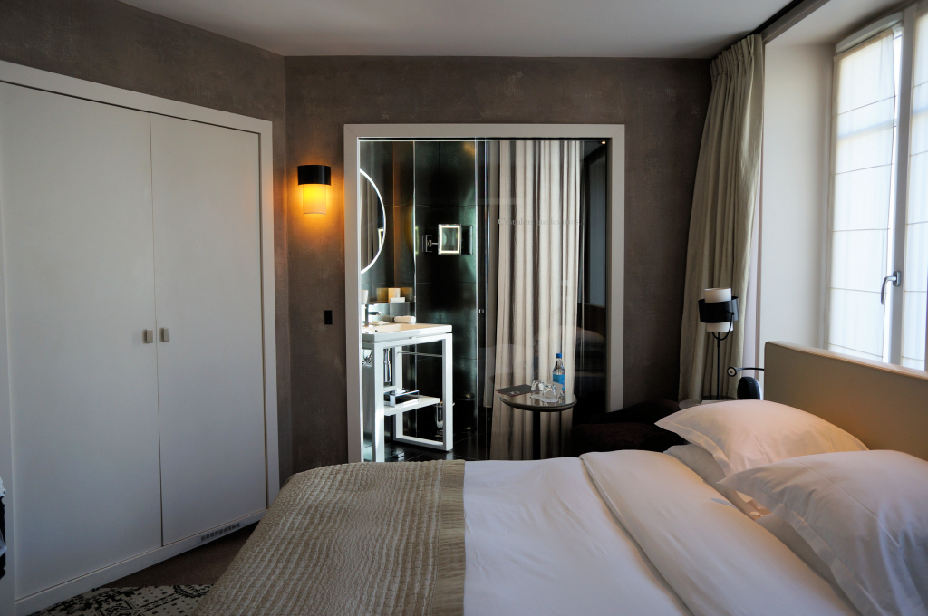 To our right was a cosy looking restaurant where we’d take breakfast the following morning and to the left was reception. We had a short wait whilst the lucky chap on duty was making arrangements for a somewhat demanding family who wanted to dine atop the Eiffel Tower. After a short wait we were warmly welcomed and handed the key to our room. Each of the 26 rooms at Le Pavillon Des Lettres are assigned a letter which corresponds to the name of a famous author.